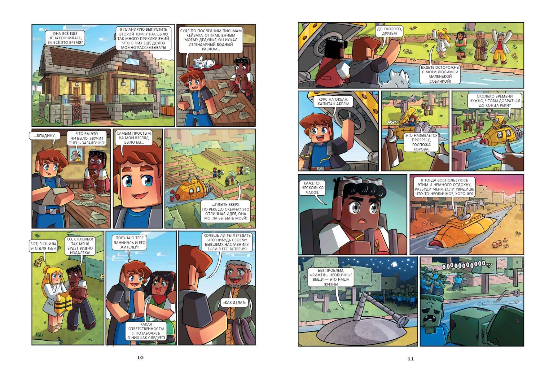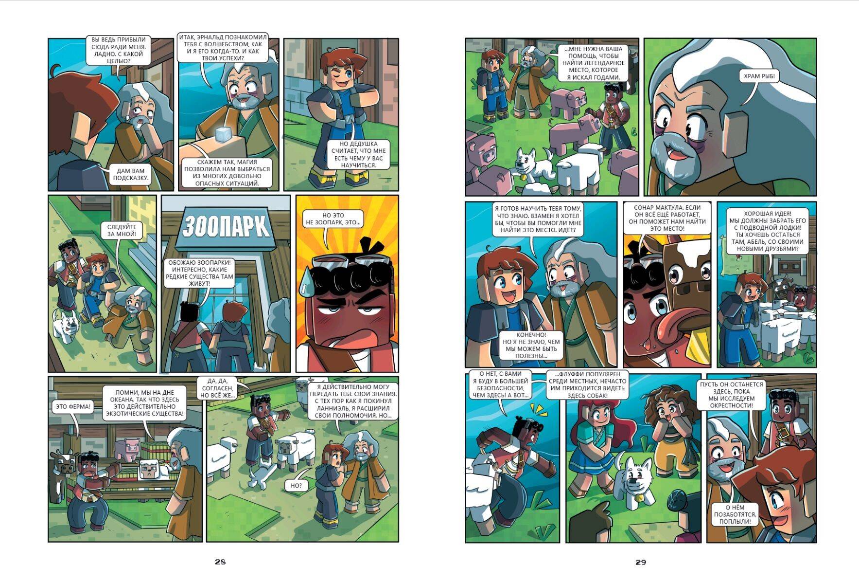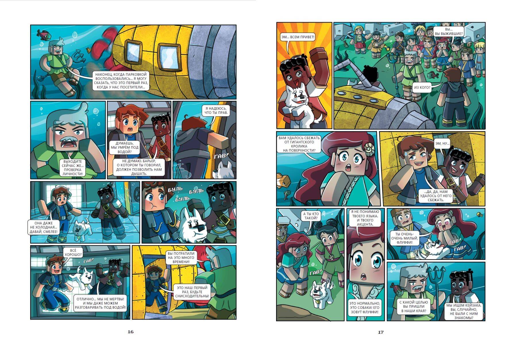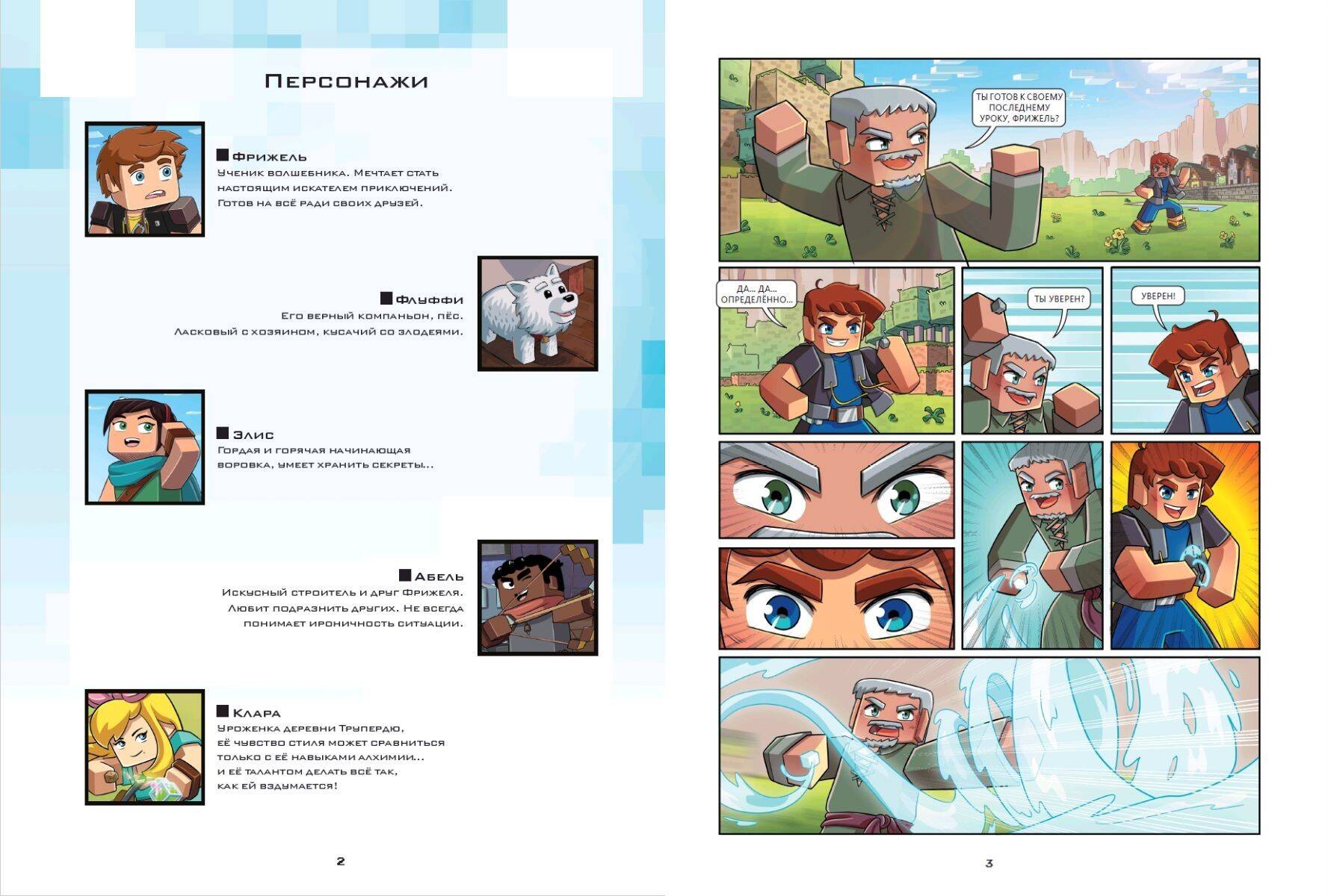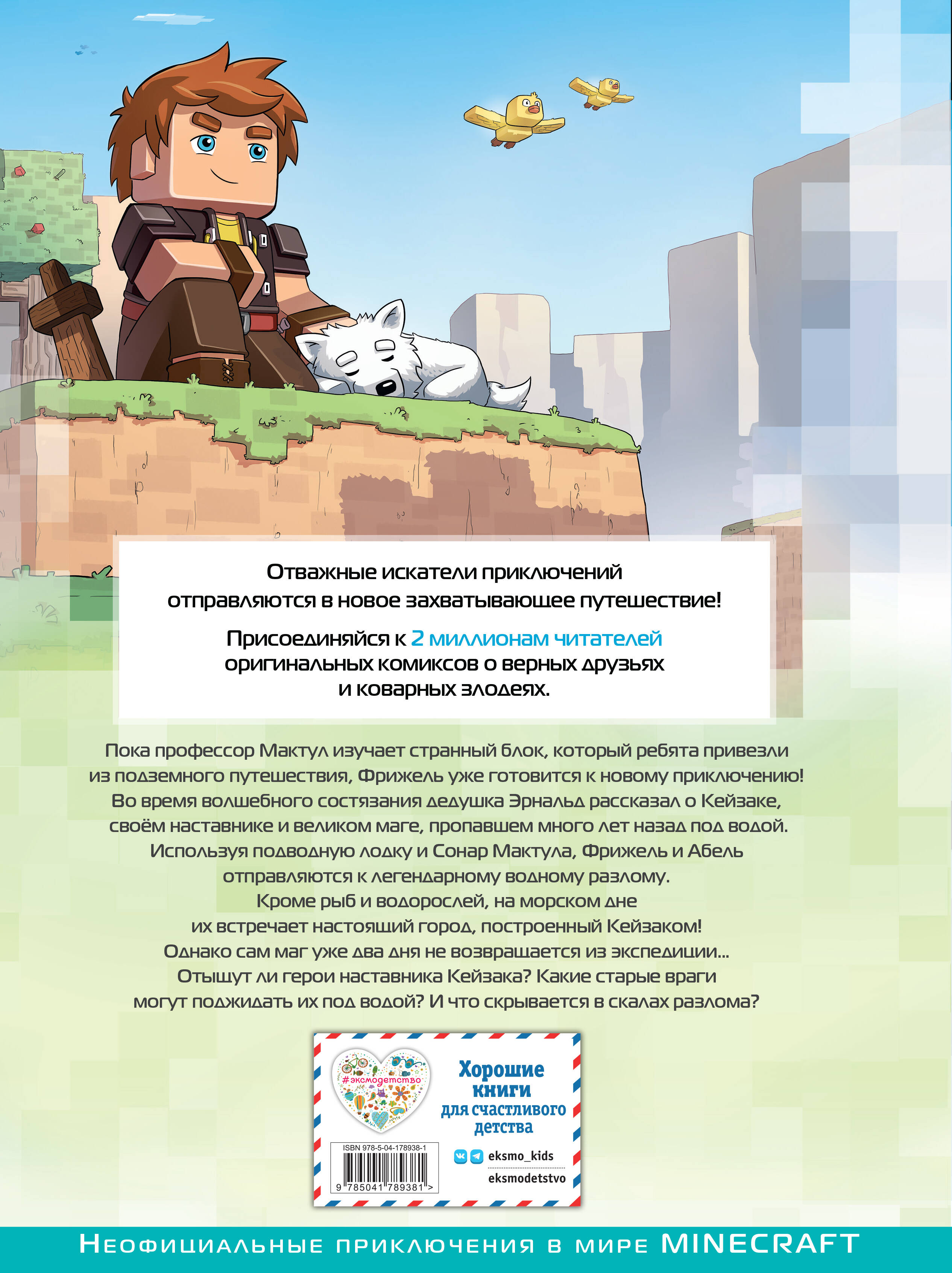 Тринадцатая часть захватывающего комикса о приключениях Фрижеля, его верного пушистого друга и отважной команды в мире Minecraft! На этот раз героям предстоит снова спуститься, но не под землю, а под воду! После предотвращения обрушения Ланниэля, Фрижель больше времени проводит с дедушкой. Эрнальд рассказывает внуку о своём наставнике Кейзаке, научившем его колдовать. Фрижель решает отправиться в новое путешествие и найти пропавшего в поисках легендарного водного разлома мага. Для такого спуска им явно понадобится помощь профессора, его подводная лодка и новое изобретение - сонар Мактула! Элис и Клара всё ещё отдыхают после вулканического приключения, поэтому Фрижель, Абель и Флуффи отправляются мужской компанией. Что же герои найдут в глубинах вод? Почему Кейзак пропал? Какие опасности и встречи таит в себе глубокое синее море?