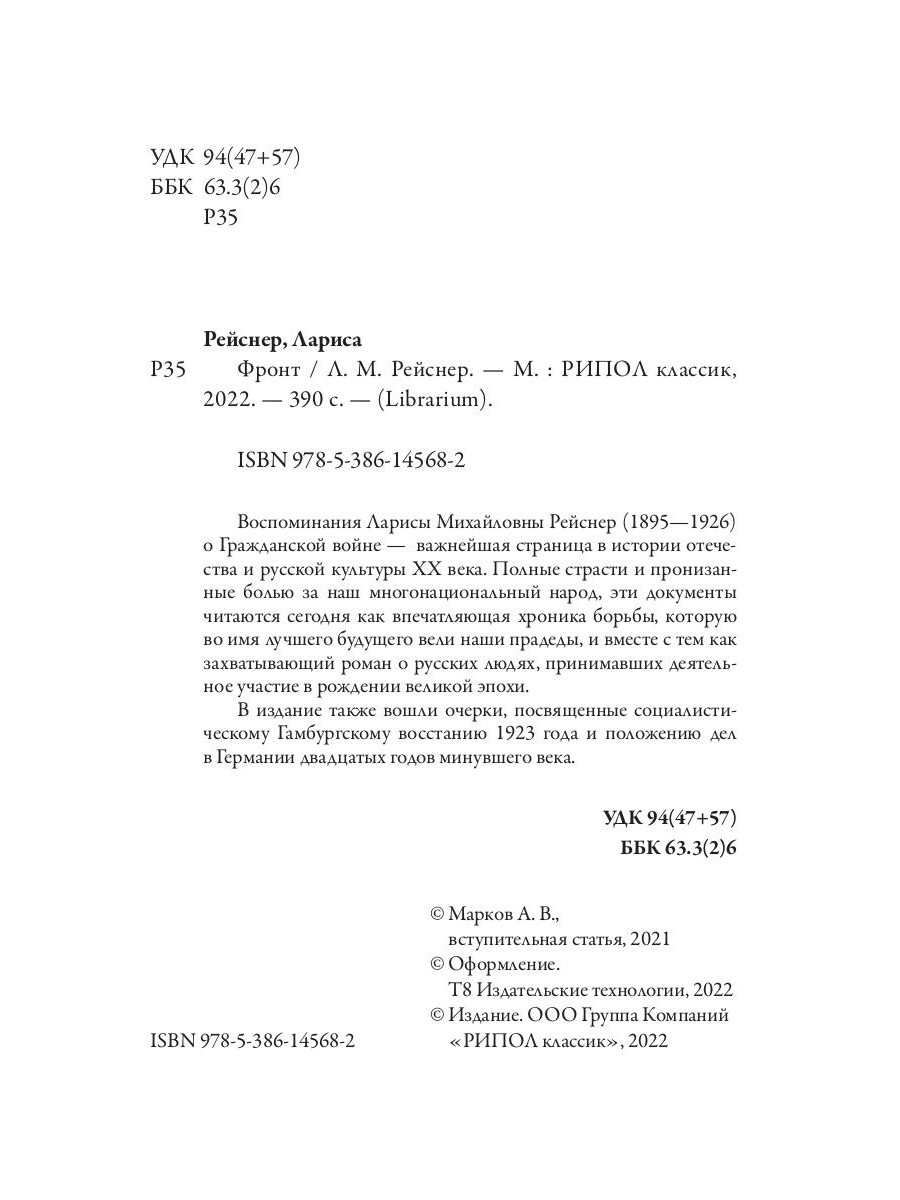Воспоминания Ларисы Михайловны Рейснер (1895-1926) о Гражданской войне - важнейшая страница в истории отечества и русской культуры ХХ века. Полные страсти и пронизанные болью за наш многонациональный народ, эти документы читаются сегодня как впечатляющая хроника борьбы, которую во имя лучшего будущего вели наши прадеды, и вместе с тем как захватывающий роман о русских людях, принимавших деятельное участие в рождении великой эпохи.