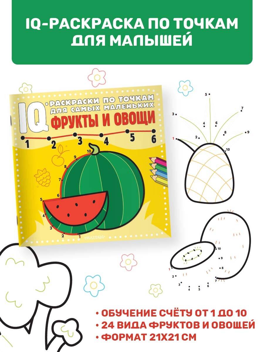 Это весёлая обучающая раскраска для первого знакомства с цифрами. С её помощью малыш быстро научится счёту от 1 до 10, соединяя точки по порядку, и узнает много интересного о фруктах и овощах, которые каждый день видит вкруг. Наши IQ-раскрски помогут в игровой форме развить интеллект и творческие способности ребёнка.| Издательство | ИЗДАТЕЛЬСТВО "АСТ" |