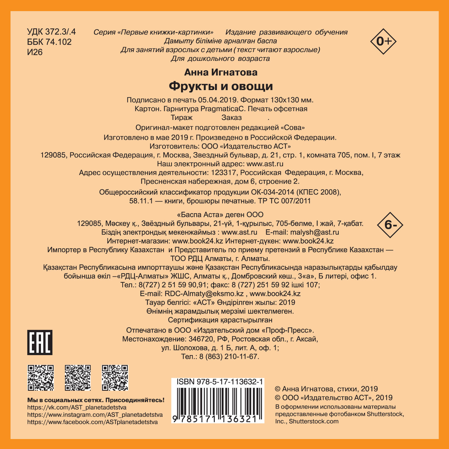 О чем эта книга Серия книг «Первые книжки-картинки» привлечёт внимание покупателей удобным карманным форматом, закругленными краями и красочными иллюстрациями, которые ребенок с удовольствием будет разглядывать - и конечно, узнавать много интересного о мире живой природы. Малыш рассмотрит картинки и фото, запомнит названия овощей и фруктов. Кому книга будет интересна Эта книга для детей и их родителей - для всех, кому интересно узнать о мире живой природы. Каковы особенности этой книги Книжка рассчитана на дошкольников, она поможет заинтересовать малышей миром живой природы. С познавательной красочной книжкой малыш замечательно проведет время - совместные занятия со взрослыми расширяют кругозор, обогащают словарный запас ребёнка, развивает речь, внимание, мышление. Иллюстрации подобраны в соответствии с возрастными особенностями детского восприятия. Компактная книжка удобного формата - ее можно взять с собой в путешествие или в гости. Пусть малыш играет и узнаёт новое!| Издательство | Издательство "АСТ" |