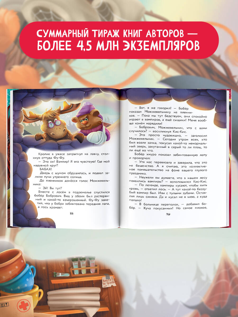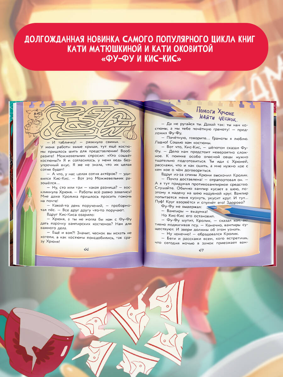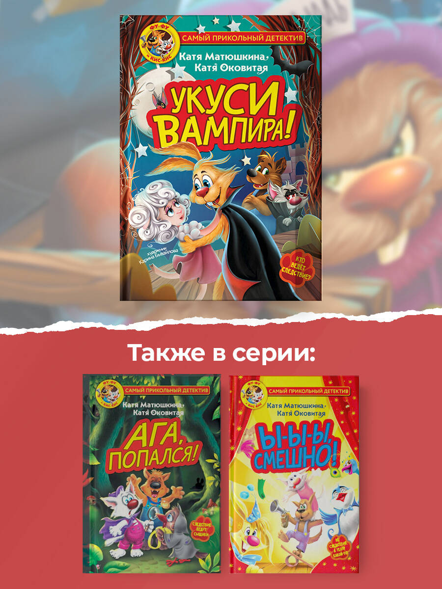 Суммарный тираж книг авторов - более 4,5 млн экземпляров. Книги Кати Матюшкиной и Кати Оковитой издаются в России и за рубежом. По историям о сыщиках Фу-Фу и Кис-Кисе снимают мультфильмы. Ура! Долгожданная НОВИНКА самого популярного цикла книг Кати Матюшкиной и Кати Оковитой «Фу-Фу и Кис-Кис». Так заразительно вы ещё не смеялись! Новые очаровательные персонажи и множество курьёзных ситуаций. Известные сыщики Фу-Фу и Кис-Кис идут по следу таинственного преступника. Кто-то излишне кусачий объявился в Скверном лесу! Только здесь вы обретёте уникальные знания о том, как стать вампиром или как противостоять вампиру. Читателя ждут весёлые приключения, загадочные исчезновения, невероятные происшествия, погони, похищения и, конечно, необычные расследования, и добрые друзья! Увлекательное чтение для детей старшего дошкольного и младшего школьного возраста. Идеальная история для семейного чтения.| Издательство | ИЗДАТЕЛЬСТВО "АСТ" |
