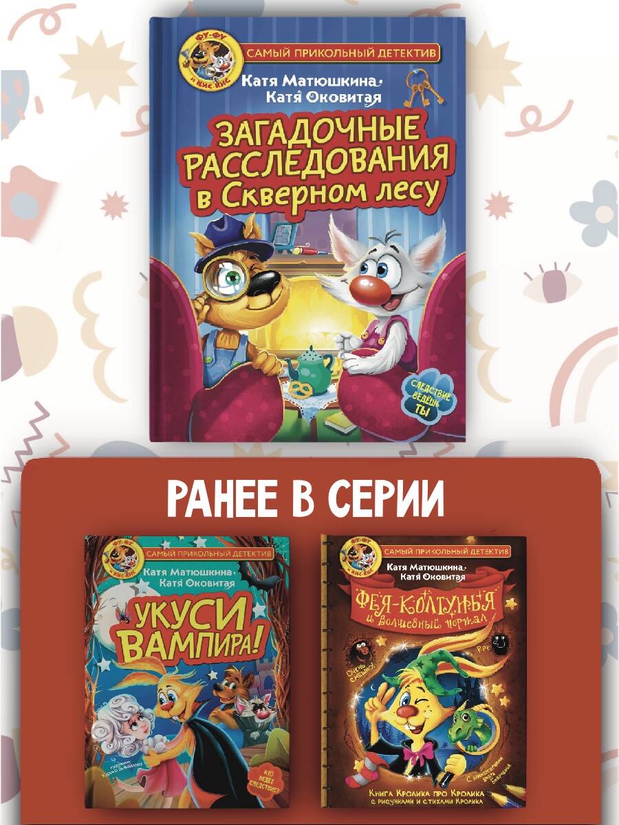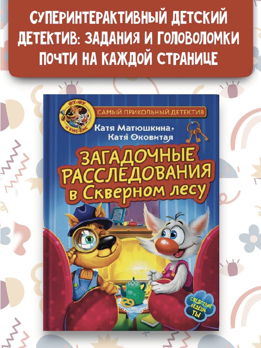 Суммарный тираж книг авторов - более 4,5 млн экземпляров. Книги Кати Матюшкиной и Кати Оковитой издаются в России и за рубежом. По историям о сыщиках Фу-Фу и Кис-Кисе снимают мультфильмы. Ура! Сразу три расследования самых известных сыщиков Фу-Фу и Кис-Киса Кати Матюшкиной и Кати Оковитой. Стань активным участником расследования! Сейчас ты - настоящий сыщик. Помогу Фу-Фу и Кис-Кису обнаружить преступника. Весёлые приключения, загадочные происшествия, магия, погони, похищения, таинственные гости, и, конечно, много игр и головоломок! Читай, играй и расследуй! Настоящий квест для юного сыщика. Увлекательное чтение для детей старшего дошкольного и младшего школьного возраста.| Издательство | ИЗДАТЕЛЬСТВО "АСТ" |