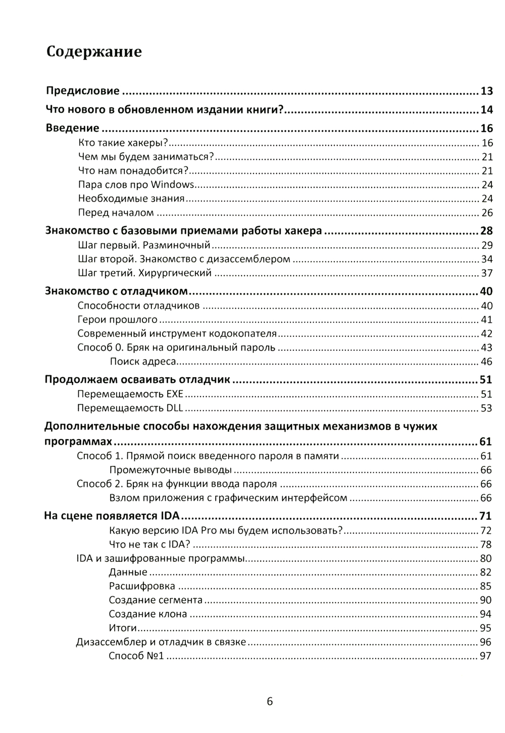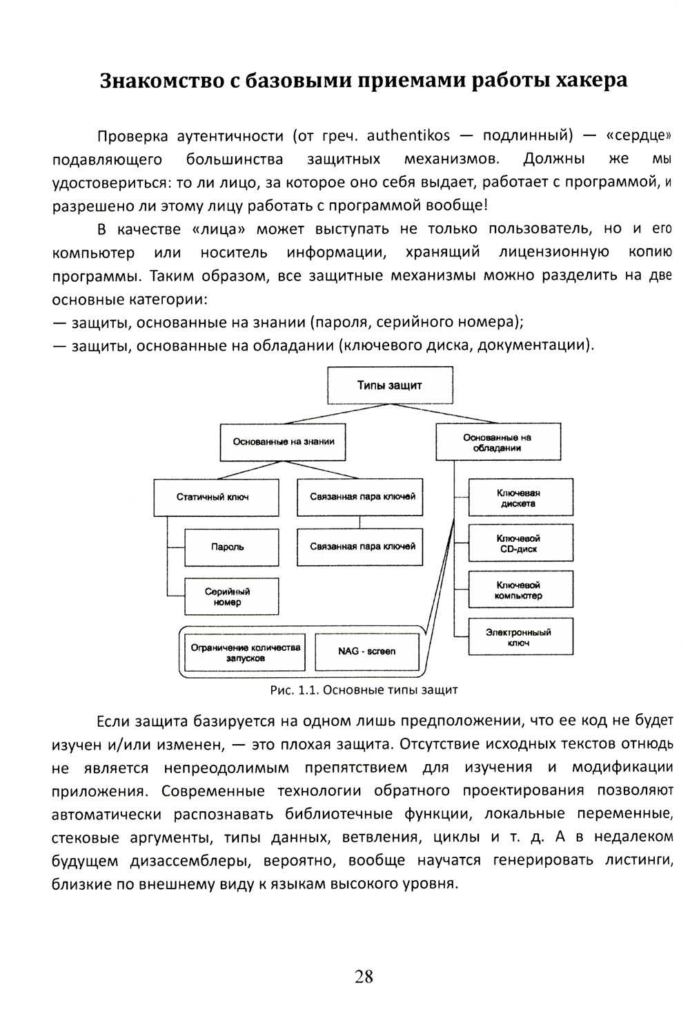 Книга, которую вы сейчас держите в руках, открывает двери в удивительный мир защитных механизмов - здесь рассказывается о том, как создаются и вскрываются защиты. Она адресована всем, кто любит захватывающие дух головоломки, всем, кто проводит свободное и несвободное время за копанием в недрах программ и операционных систем.