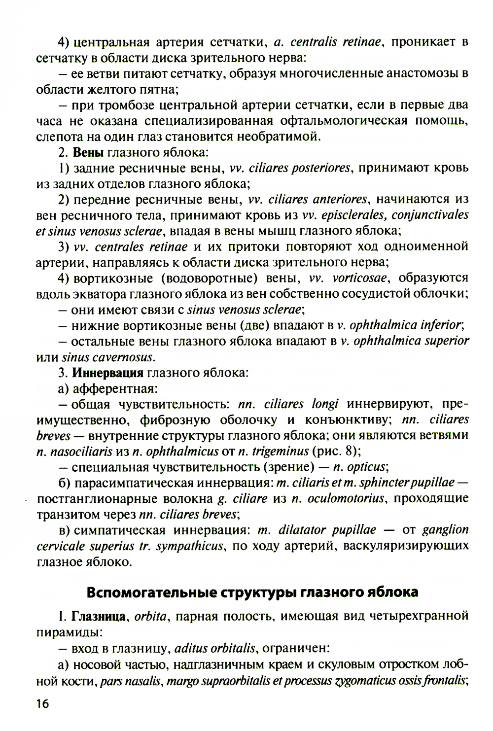 Пособие подготовлено в соответствии с требованиями учебной программы по анатомии человека для высших учебных медицинских заведений. В издании содержатся основные сведения по анатомии органов зрения, слуха и равновесия, особенности их кровоснабжения и иннервации. Наряду с русскими названиями приводятся соответствующие латинские и греческие термины в соответствии с Международной анатомической номенклатурой (2003 г.). Кратко изложены особенности организации вкусового и обонятельного анализаторов. В конце пособия описаны основы строения кожи и ее производных, раскрыты основные закономерности проведения импульсов обшей чувствительности. Предлагаемый материал строго структурирован. Текст сопровождается классическими и оригинальными иллюстрациями, на которых продемонстрированы все необходимые анатомические образования. В конце каждого раздела кратко изложены проводящие пути каждого из анализаторов. В данном издании впервые предложен термин - соматосенсорные органы. Введение указанного термина, с нашей точки зрения, является обоснованным, поскольку рецепторный аппарат кожи, мышц, связок и надкостницы (соматические структуры) способен воспринимать и трансформировать в нервные импульсы важнейшие в жизнедеятельности человека раздражения, такие как болевые, температурные, тактильные и проприоцептивные, тем самым создавая условия для более полной адаптации человека к окружающей среде. Данное пособие предусматривает систематизацию знаний, полученных на лекциях и практических занятиях, оно может быть использовано в качестве «блок-схемы» при изучении соответствующих тем, при подготовке к зачету по разделам «Анатомия центральной нервной системы и органов чувств» и «Ангионеврология», а также при повторении пройденного материала в период экзаменационной сессии. Пособие рассчитано на студентов и курсантов факультетов подготовки врачей, слушателей факультетов повышения квалификации, оно также может быть использовано врачами-клиницистами различных специальностей.| Издательство | Элби |