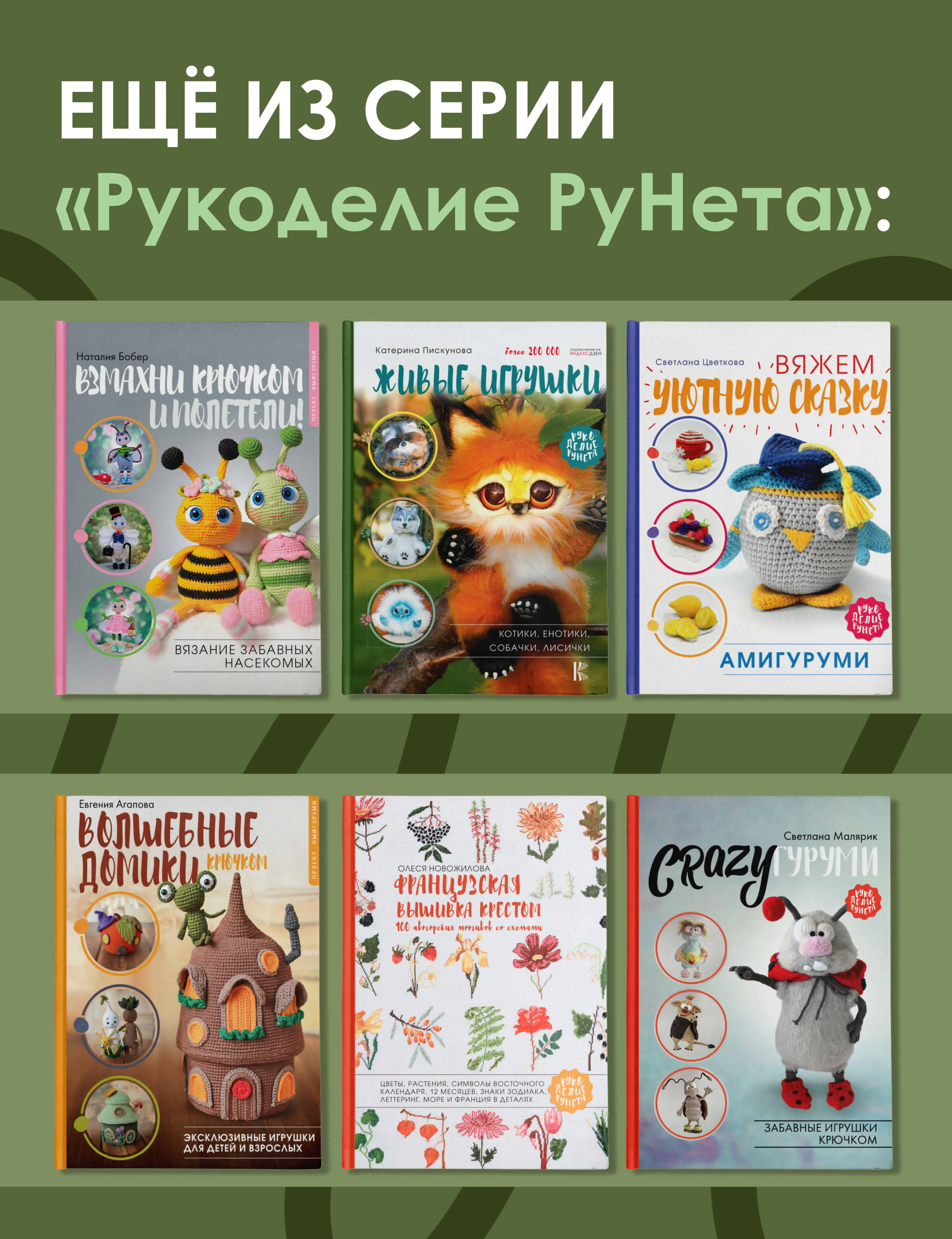 В этой книге собрано 8 мастер-классов по вязанию игрушек на пуговицах в технике "поворотные ряды". Вы сможете связать львенка, жирафа, дракона, зайчика, слоника, оленя и двух котят. В этом вам помогут рекомендации автора по выбору пряжи и крючка, базовые элементы вязания крючком, инструкции, как вязать поворотными рядами, а также советы, как оформлять игрушки.| Издательство | Издательство "АСТ" |