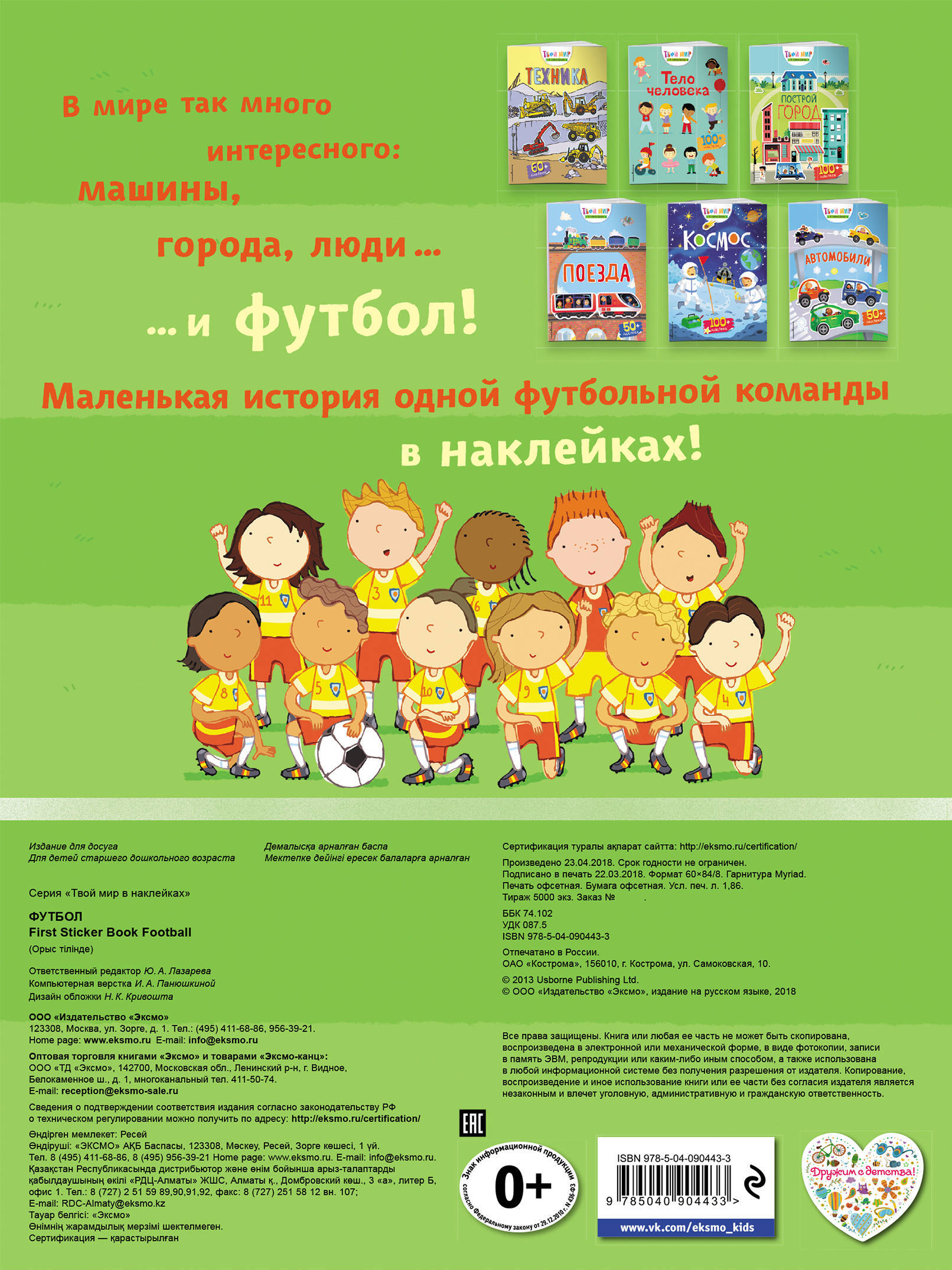 Юные болельщики и футболисты с помощью ста наклеек смогут принять участие в подготовке к матчу и тренировках команды, финальной игре и триумфальной победе. Вместе с футболистами и болельщиками ставить и достигать цели - невероятно и захватывающе!| Издательство | Эксмо |