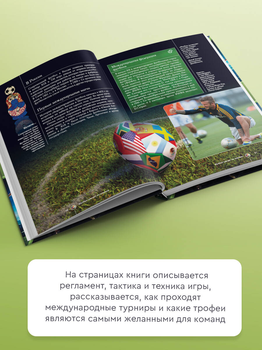 Этот иллюстрированный гид посвящен любимому миллионами людей виду спорта - футболу: от его возникновения и до наших дней. На страницах книги описывается регламент, тактика и техника игры, рассказывается, как проходят международные турниры и какие трофеи являются самыми желанными для команд. И конечно, здесь содержатся сведения о звездах современного футбола и легендарных матчах. Каждая статья дополнена богатым иллюстративным материалом - фотографиями выдающихся футболистов и тренеров. Несомненно, подобное издание будет интересным для любого читателя, увлекающегося футболом, вне зависимости от его возраста.| Издательство | ИЗДАТЕЛЬСТВО "АСТ" |
