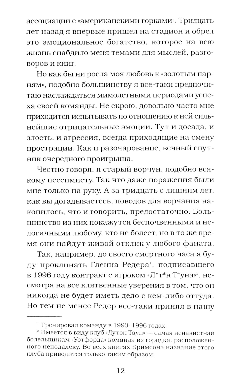 Комплект из 2 книг: «Полюби меня красного: Когда Темза становится Невой. И обратно» Книга представителя петербургского сообщества болельщиков клуба «Манчестер Юнайтед» об удивительном способе бежать от действительности - окунуться с головой в английский футбольный хаос, не покидая при этом Невского проспекта. Когда же окрестности Петербурга становятся для фаната «МЮ» невыносимыми, он приезжает в Англию, где нарывается на еще большие неприятности. Но только в том-то и дело, что они ему нравятся. «Убийцы футбола: Почему хулиганство и расизм уничтожают игру» После окончания своей восемнадцатилетней военной службы отставной сержант британских Королевских воздушных сил Дуглас Бримсон решил взяться за писательское дело. Но роями его романов и документальных расследований стали не свидетели Войны в Заливе или Фолклендского кризиса, а обычные англичане, которые, как и сам автор, каждую неделю приходили на трибуны футбольного стадиона. Обыватели называли их хулиганами, полиция предпочитала действие разговорам, и один только Бримсон попробовал во всем разобраться... «Убийцы футбола» - книга о том, как в условиях нарастающего национализма и ксенофобии радикальных болельщиков пытаются перетянуть на свою сторону недобросовестные политики и нацисты. И как британские фанаты этому противостоят.| Издательство | Т8 RUGRAM |