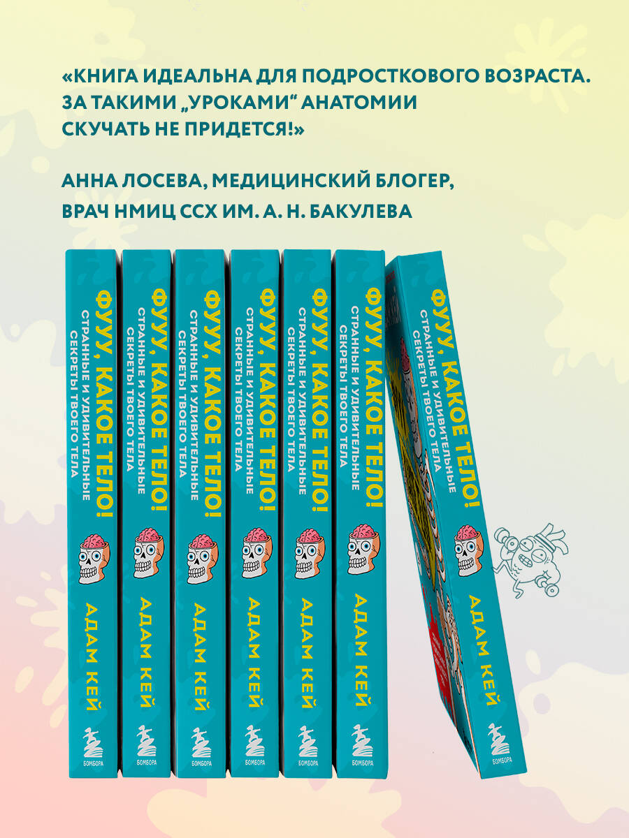 Перед тобой самая смешная в мире анатомия от Адама Кея, врача и комика. Его книги проданы суммарным тиражом более 3 млн экземпляров! С ее помощью мы узнаем все странные и удивительные секреты человеческого тела! • Почему, например, мозг не чувствует боли? • Почему сердце не ярко-розовое и вовсе не в «форме сердечка»? (Упс, кто-то должен срочно сказать об этом тем, кто делает открытки на День святого Валентина.) • А знаешь ли ты, что легкие каждый день выдыхают столько воздуха, что хватило бы на тысячу воздушных шариков? Как будто на обзорной экскурсии, мы изучим все самые интересные места твоего тела. Например, кожу, которая является самым большим органом и без которой ты выглядел бы очень странным. Кстати, кожа на самом деле не является твоей единственной оболочкой. Куда бы ты ни пошел, тебя всегда окружает невидимое глазу облако. Это облако из тысяч крошечных кусочков кожи, которые постоянно отслаиваются от тебя, вперемешку с клетками, выходящими из различных отверстий каждый раз, когда ты говоришь, зеваешь, рыгаешь или пукаешь. И, если ты считаешь это отвратительным, подожди, - Адам Кей расскажет о странных существах, которые живут в твоих ресницах. Или, что еще более мерзко, о том, что они едят на ужин. «Лучший способ узнать и принять свое тело для подростка - поговорить о нем со взрослым, который знает все про наш организм, не будет подбирать слова, замалчивать неловкие темы и будет не слишком серьезен, чтобы не внушить страхи и неуверенность в себе. Становится очевиден образ такого взрослого. Это врач-комик. И это Адам Кей. Поэтому книга идеальна для подросткового возраста. Отдельное удовольствие можно получить от иллюстраций. За такими "уроками" анатомии скучать не придется!» - Анна Лосева, врач анестезиолог-реаниматолог отделения анестезиологии-реанимации НМИЦ ССХ им. А. Н. Бакулева, автор медицинского блога о первой помощи med_otvet На обложке стоит маркировка 18+, согласно требованию законодательства. Эта книга об анатомических различиях мальчиков и девочек, половом развитии, влечении, сексе, защите личных границ. Она не будет продана детям в магазине. Решение о покупке принимают только родители.| Издательство | ООО "Издательство "Эксмо" |
