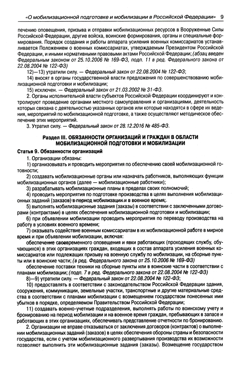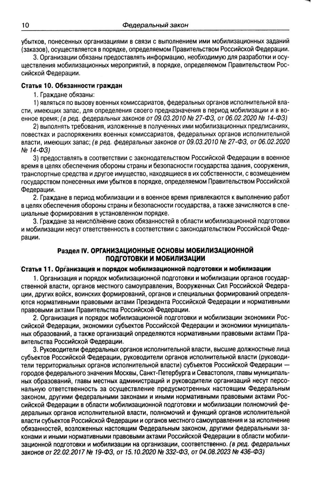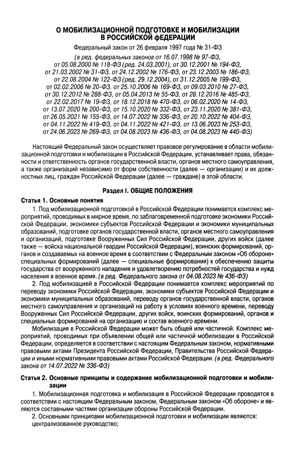 ФЗ "О мобилизационной подготовке и мобилизации в РФ"