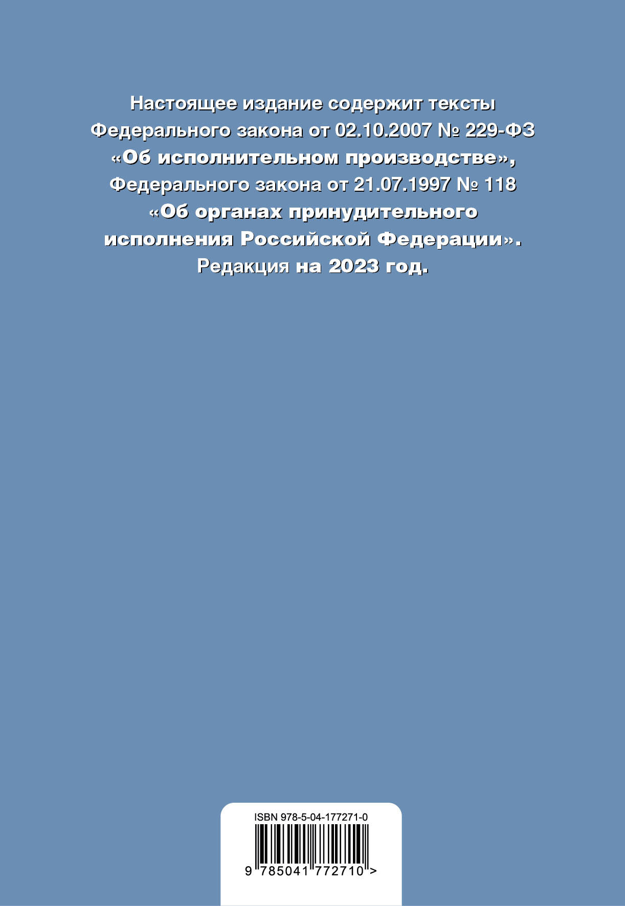 Аннотация: ФЗ "Об исполнительном производстве". ФЗ "Об органах принудительного исполнения Российской Федерации". В ред. на 2023 год / ФЗ №229-ФЗ. ФЗ №118-ФЗ