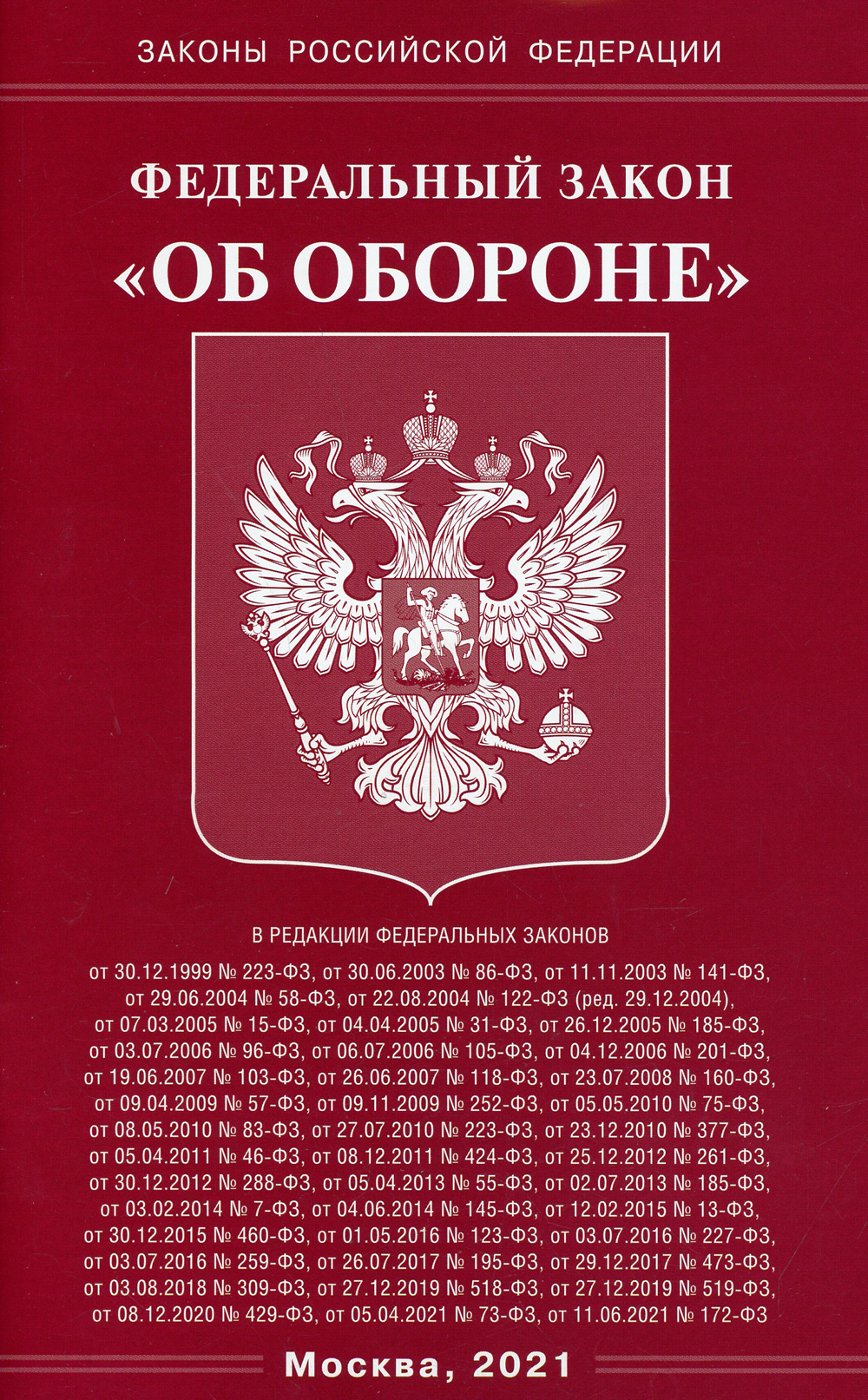 Настоящий Федеральный закон определяет основы и организацию обороны Российской Федерации, полномочия органов государственной власти Российской Федерации, функции органов государственной власти субъектов Российской Федерации, органов местного самоуправления, организаций и их должностных лиц, права и обязанности граждан Российской Федерации в области обороны, силы и средства, привлекаемые для обороны, ответственность за нарушение законодательства Российской Федерации в области обороны, а также другие нормы, касающиеся обороны. (в ред. Федерального закона от 05.04.2013 № 55-ФЗ)| Издательство | Омега-Л |