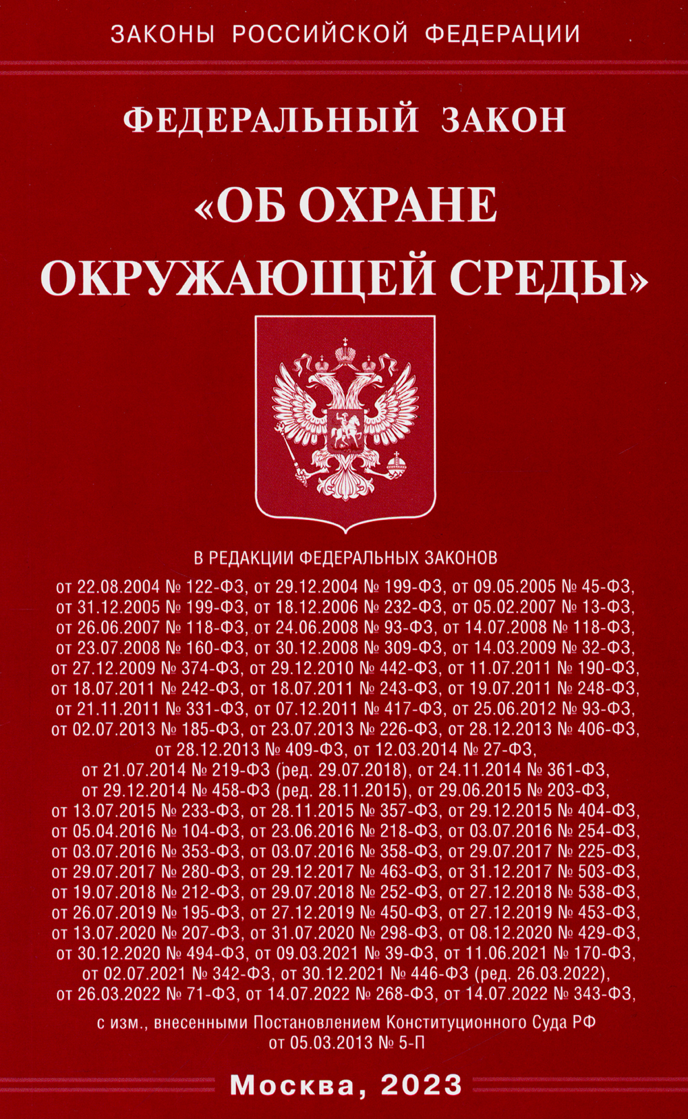 В соответствии с Конституцией Российской Федерации каждый имеет право на благоприятную окружающую среду, каждый обязан сохранять природу и окружающую среду, бережно относиться к природным богатствам, которые являются основой устойчивого развития, жизни и деятельности народов, проживающих на территории Российской Федерации. Настоящий Федеральный закон определяет правовые основы государственной политики в области охраны окружающей среды, обеспечивающие сбалансированное решение социально-экономических задач, сохранение благоприятной окружающей среды, биологического разнообразия и природных ресурсов в целях удовлетворения потребностей нынешнего и будущих поколений, укрепления правопорядка в области охраны окружающей среды и обеспечения экологической безопасности. Настоящий Федеральный закон регулирует отношения в сфере взаимодействия общества и природы, возникающие при осуществлении хозяйственной и иной деятельности, связанной с воздействием на природную среду как важнейшую составляющую окружающей среды, являющуюся основой жизни на Земле, в пределах территории Российской Федерации, а также на континентальном шельфе 'и в исключительной экономической зоне Российской Федерации.| Издательство | Омега-Л |