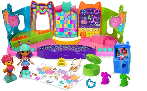Разыграйте любимые сцены из сериала "Кукольный домика Габби" с набором Вечеринка. Этот по-кошачьи красочный игровой набор включает в себя двух персонажей и акцессуары - Габби в ее новом наряде для вечеринки на коньках и нового персонажа, кота Марти, воздушные шары, каток, на котором обе фигурки действительно могут кататься, и многое другое. Вы можете также присоединить набор Вечеринка к набору Кукольный домик Габби (продается отдельно).