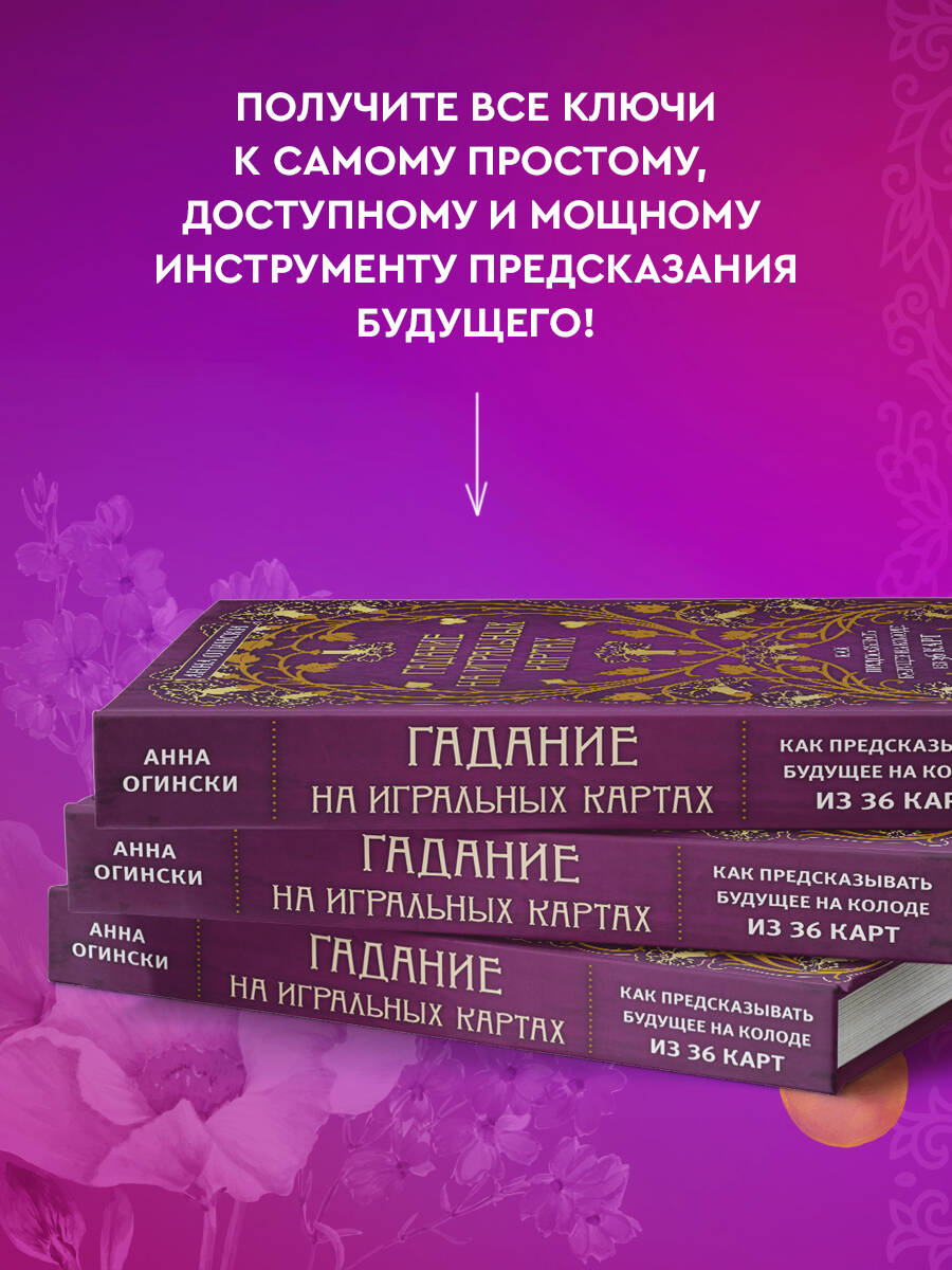 Книга Анны Огински, ведущего преподавателя учебного центра «Академия Ленорман», поможет вам самостоятельно научиться гадать на обычной колоде из 36 игральных карт. Это подробное, понятное и практичное руководство станет ключом к самому простому и доступному, но, тем не менее, полному тайн инструменту предсказания будущего. В этой книге вы найдете: • Принципы и правила гадания на «цыганской» колоде из 36 карт. • Гадательные значения всех карт. • Расклады для гадания: от простейших до сложных. • Сочетания карт и правила их чтения. • Задания и полезные упражнения для тренировки навыков и развития интуиции. АННА ОГИНСКИ - руководитель учебного центра «Академия Ленорман», автор книги «Оракул Ленорман. Самоучитель по гаданию и работе с картами», а также статей, курсов и материалов для самообучения по различным мантическим системам. «Анна Огински - человек уникального дара и таланта. Она создала книгу, в которой передаёт лучшие знания и практические методы гадания на игральных картах. Карты здесь - это не просто картинки и знаки, но алгоритмы нашей жизни и судьбы, которые, благодаря этой книге, станут вам подвластны». - Александр Панфилов, основатель центра развития личности Alten, писатель, парапсихолог, таролог, психолог| Издательство | ООО "Издательство "Эксмо" |