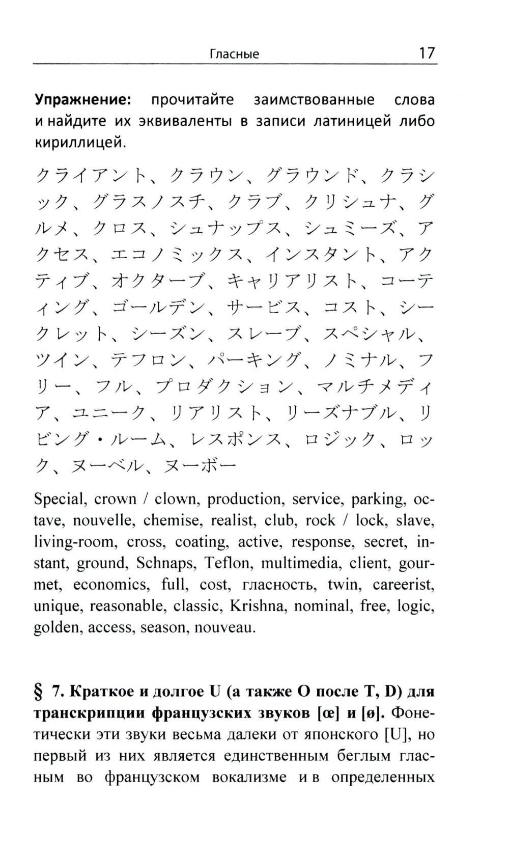 Настоящее учебное пособие рассчитано на лиц, изучающих японский язык, и освещает наиболее трудные вопросы транскрибирования иностранных для японского языка слов средствами японской графики. Пособие предназначено для выработки навыков опознания слов европейских языков (в том числе русского) в их японизированной форме и восстановления их русскоязычного облика в процессе перевода с японского языка на русский. Пособие также снабжено приложением, куда входят поурочные списки слов гайрайго из учебника Л. Т. Нечаевой «Японский язык для начинающих».| Издательство | Восточная книга |