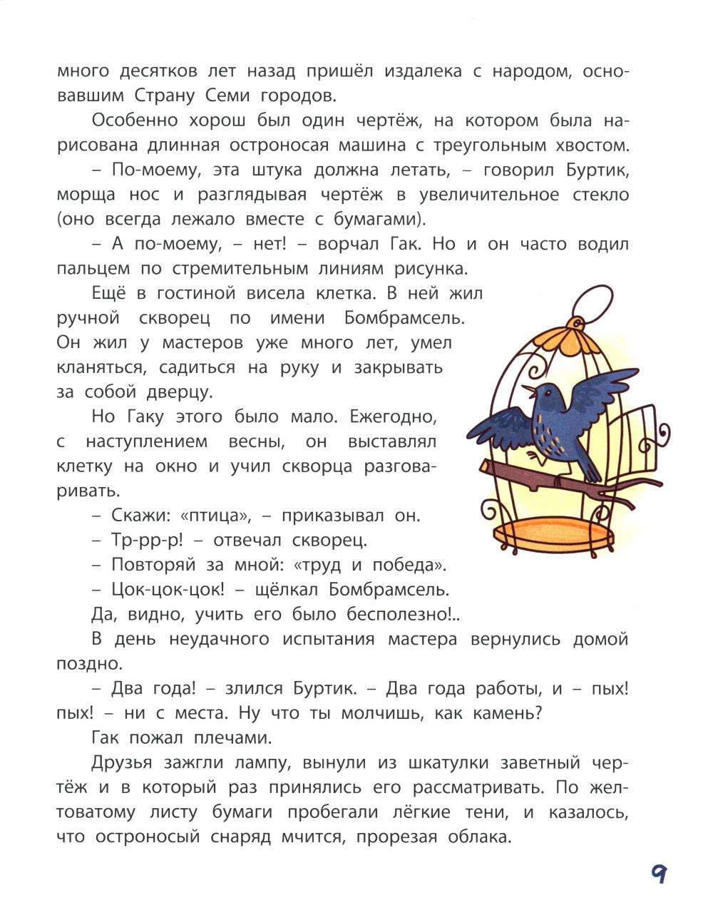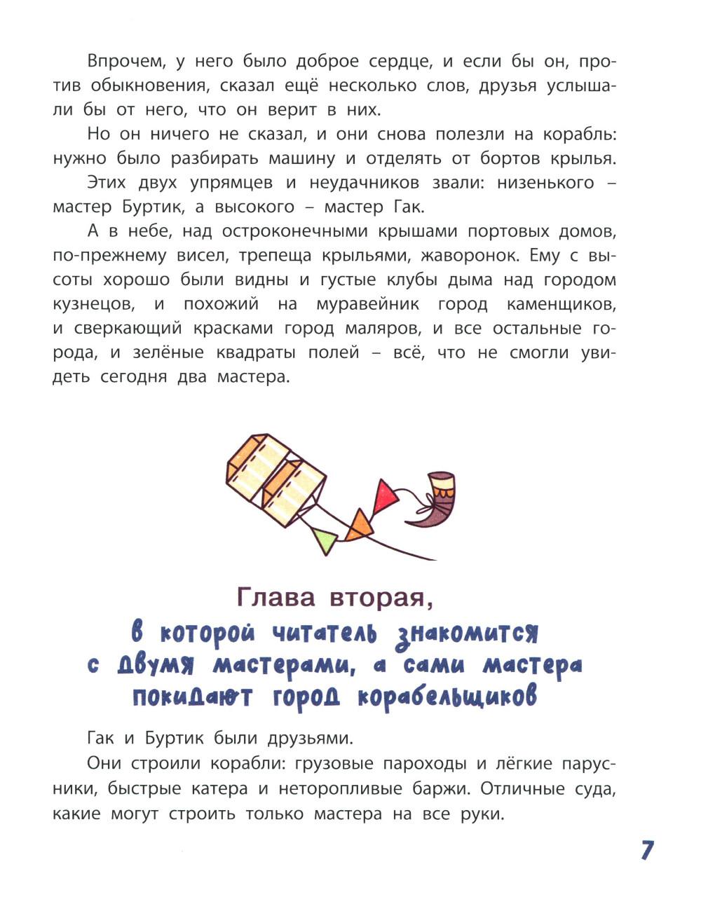 Сказочная повесть советского писателя Святослава Сахарнова - это настоящий гимн трудолюбию. Ведь для ремесленников Страны Семи городов нет большей радости, чем познавать, строить и украшать. Например, Гак и Буртик - мастера-кораблестроители. Помимо интересной работы у них есть и хобби - в свободное время они пытаются расшифровать чертёж, на котором изображена старинная машина. Именно этот чертёж похищают неизвестные злоумышленники. Гак и Буртик отправляются в погоню, следы похитителей ведут в соседнее государство - Страну бездельников... Для младшего школьного возраста.| Издательство | ЭНАС-КНИГА |