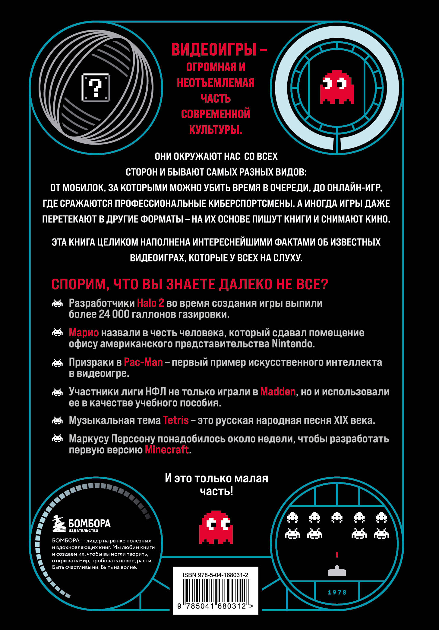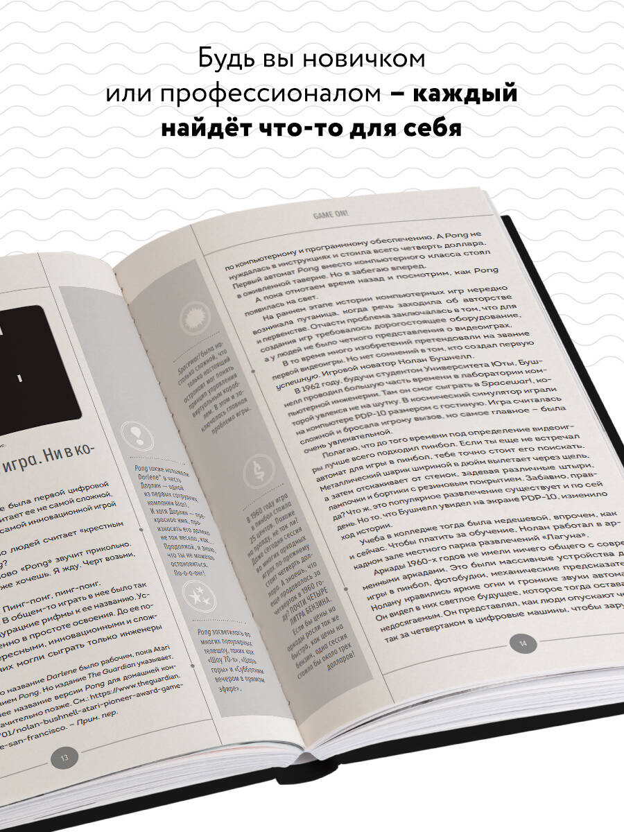 Видеоигры - огромная и неотъемлемая часть современной культуры. Они окружают нас со всех сторон и бывают самых разных видов: от мобилок, за которыми можно убить время в очереди, до онлайн-игр, где сражаются профессиональные киберспортсмены. А иногда игры даже перетекают в другие форматы - на их основе пишут книги и снимают кино. Эта книга целиком наполнена интереснейшими фактами об известных видеоиграх, которые у всех на слуху. Спорим, что вы знаете далеко не все? Например: • разработчики Halo 2 во время создания игры выпили более 24 000 галлонов газировки; • Марио назвали в честь человека, который сдавал помещение офису американского представительства Nintendo; • призраки в Pac-Man - первый пример искусственного интеллекта в видеоигре; • участники лиги НФЛ не только играли в Madden, но и использовали ее в качестве учебного пособия; • музыкальная тема Tetris - это русская народная песня XIX века; • Маркусу Перссону понадобилось около недели, чтобы разработать первую версию Minecraft. И это только малая часть! Внутри вас ждет исторический обзор развития видеоигр от появления первых аркадных автоматов до современных технологий - подробный, но написанный простым и увлекательным языком. Занимательные факты, рассказы о создании игр, пасхалки и множество иллюстраций позволят вам по-настоящему погрузиться в мир видеоигр и узнать много нового об этой увлекательной индустрии.| Издательство | ООО "Издательство "Эксмо" |