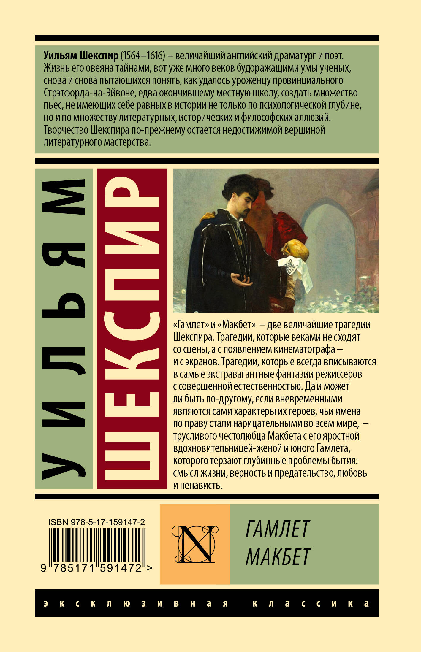 "Гамлет" и "Макбет" - две величайшие трагедии Шекспира. Трагедии, которые веками не сходят со сцены, а с появлением кинематографа - и с экранов. Трагедии, которые всегда вписываются в самые экстравагантные фантазии режиссеров с совершенной естественностью. Да и может ли быть по-другому, если вневременными являются сами характеры их героев, чьи имена по праву стали нарицательными во всем мире, - трусливого честолюбца Макбета с его яростной вдохновительницей- женой и юного Гамлета, которого терзают глубинные проблемы бытия: смысл жизни, верность и предательство, любовь и ненависть.| Издательство | ИЗДАТЕЛЬСТВО "АСТ" |
