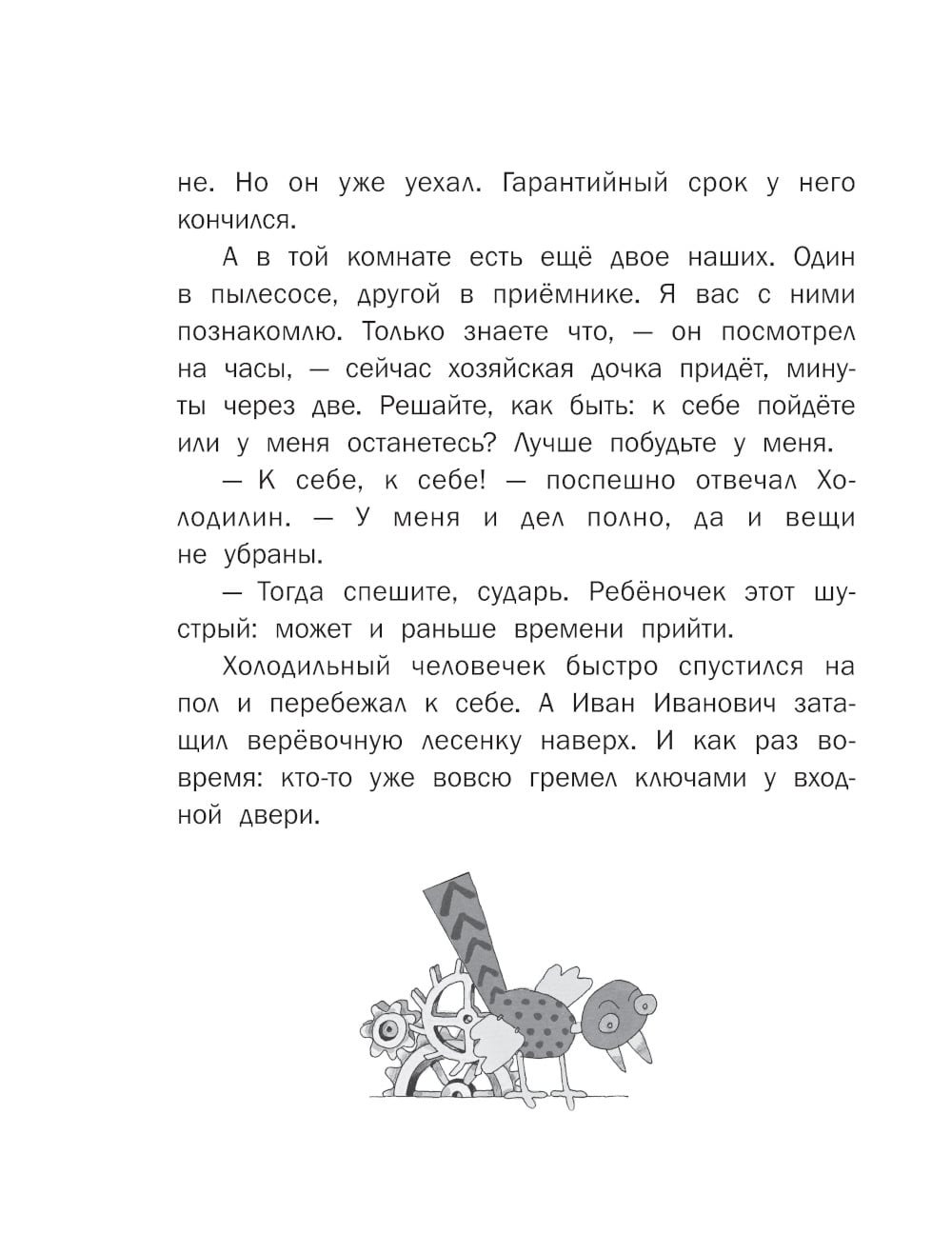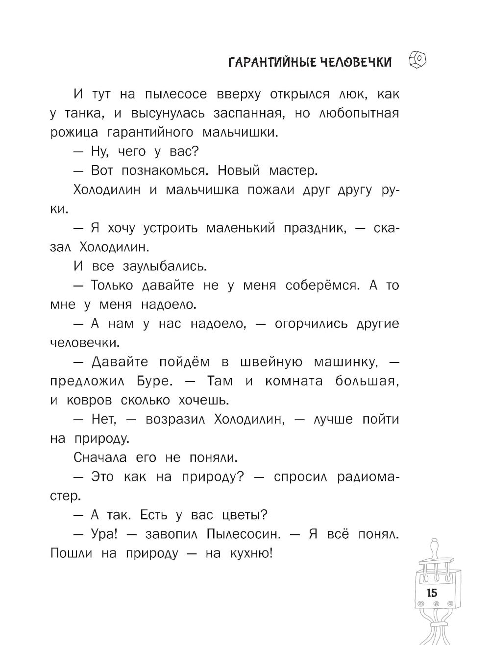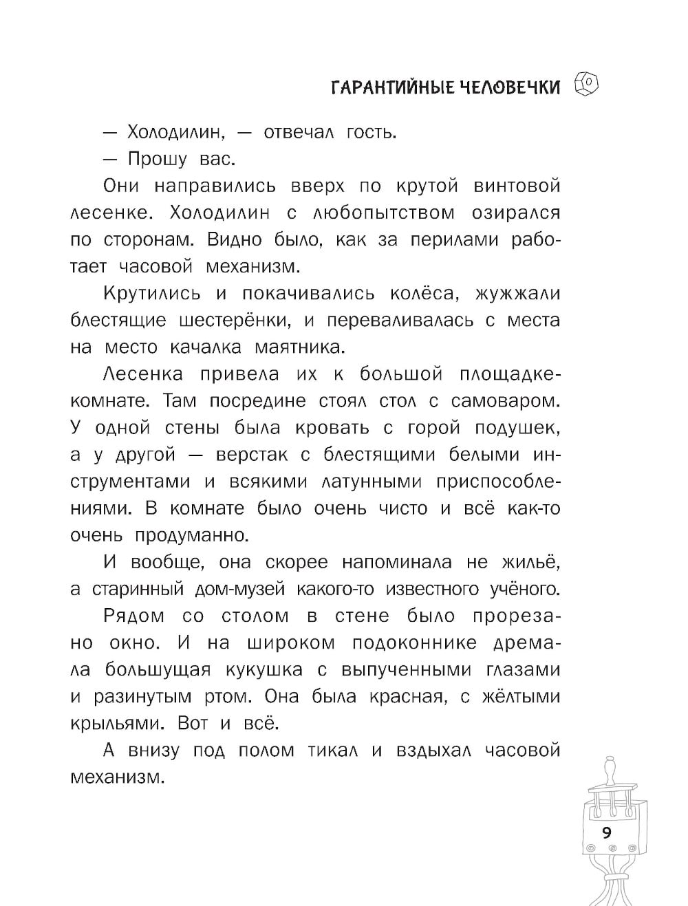 В книгу вошли две повести Э.Успенского: «Гарантийные человечки» и «Гарантийные возвращаются». Кто же это такие - гарантийные человечки? А это маленькие мастера, которые живут в разных приборах и механизмах - пылесосах, швейных машинках, часах и холодильниках. И даже в автомобилях и телефонных будках. Показываться людям им ни в коем случае нельзя, особенно детям. Бывали случаи, дети ловили их и начинали в них играть: купать, закутывать, кормить пирожными из песка и превращать в солдатиков. И ещё одна опасность грозит гарантийным - мыши. Они хоть и глупые, зато их много! Нелегка жизнь маленьких умельцев!| Издательство | АСТ |