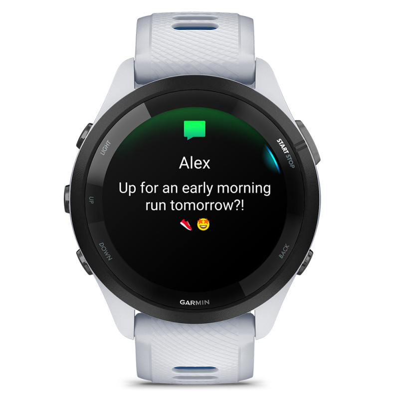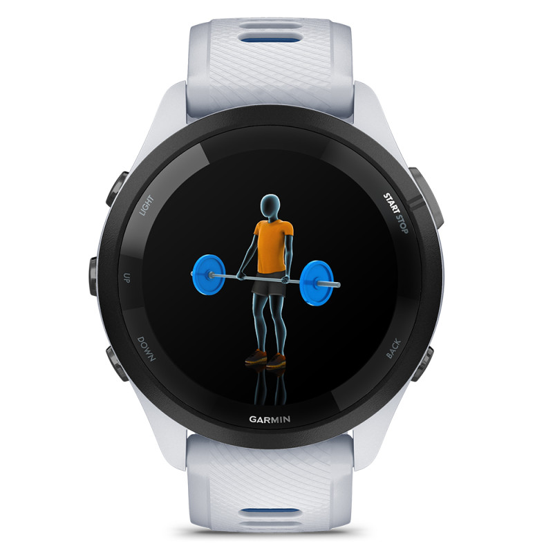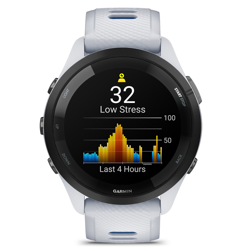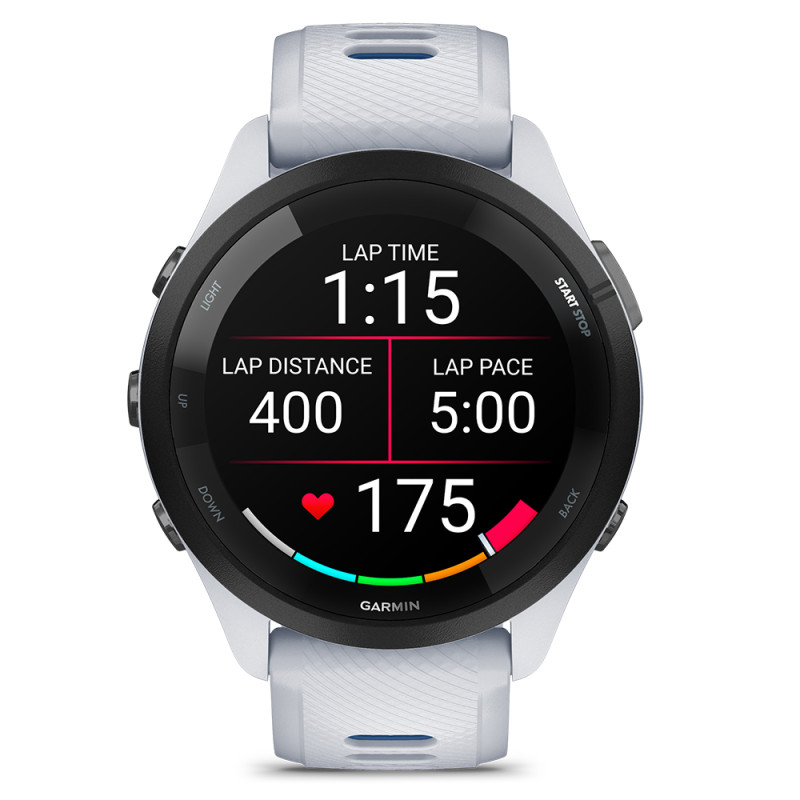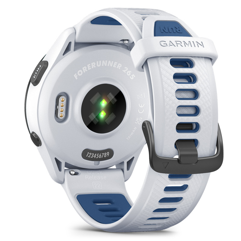 Garmin Forerunner 265 - спортивные умные часы с 46-мм корпусом, AMOLED-дисплеем и точным GPS. Подходят для бега, тренировок и ежедневного отслеживания здоровья. Устройство поддерживает многодиапазонное позиционирование, широкий набор спортивных режимов, мониторинг сна, пульса и уровня стресса.