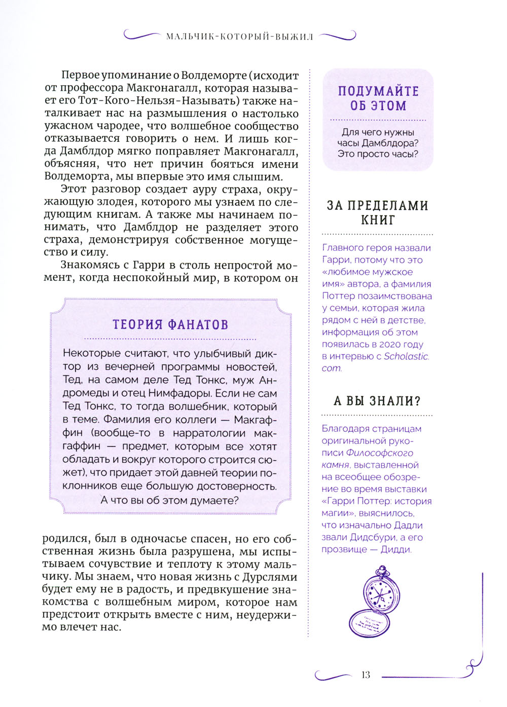 Знаете, в чем секрет книг о Гарри Поттере? С первой книги - «Философского камня» - автор создавала удивительную историю, которая не так проста, как старается выглядеть. С этим путеводителем читатели узнают много нового. Сюрпризы от Роулинг, секреты Дамблдора, озарения фанатов, история волшебного мира и природа магии - это короткий список манящих открытий, ждущих вас здесь.| Издательство | Филипок и К |