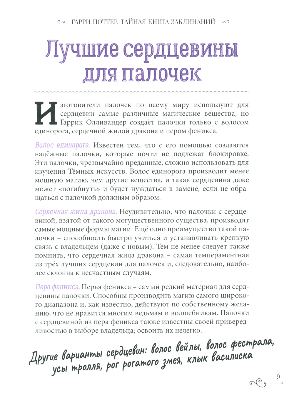 Полное собрание волшебных заклятий, чар, проклятий, сглазов и порч по вселенной Гарри Поттера включает в себя все заклинания, упомянутых в книгах, фильмах, видео-играх и на других ресурсах, посвященных Мальчику- Который- Выжил. На основе детального и глубокого анализа и многолетних изысканий было собрано более 240 заклинаний, которые вошли в этот справочник. Произношение и этимология заклинания, ситуации, когда оно использовалось, места, где упоминалось, схемы движений палочкой и многое другое - в этой невероятной книге. А на полях найдутся полезные заметки для начинающей ведьмы или волшебника.