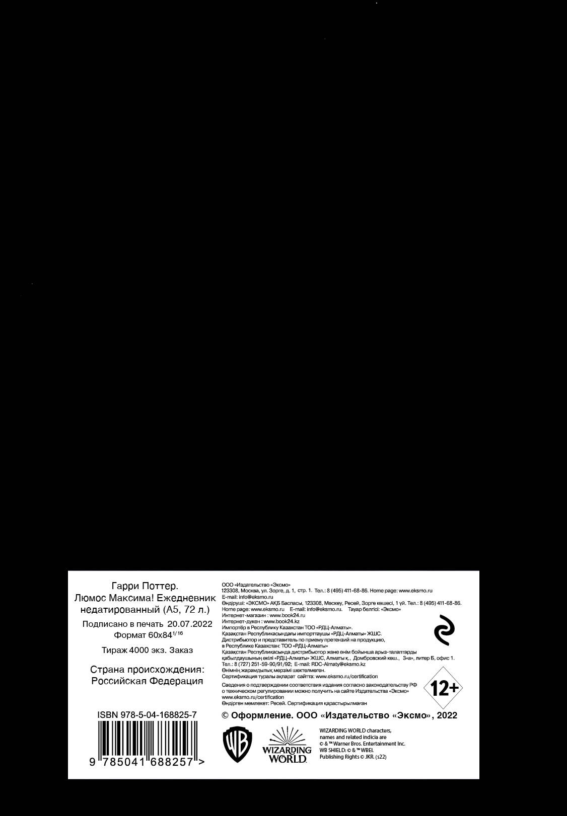 Аннотация: Гарри Поттер. Люмос Максима! Ежедневник недатированный (А5, 72 л.)