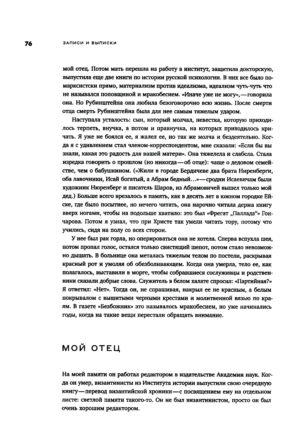 Первое посмертное собрание сочинений М.Л. Гаспарова (в шести томах) ставит своей задачей по возможности полно передать многогранность его научных интересов и представить основные направления его деятельности. Собранные в шестом-финальном-томе материалы знакомят нас с мыслями ученого о науке и людях в ней, о профессии и об исследовательских методах, о просветительстве и образовании, о месте филологии и вообще гуманитарного знания в нашей повседневной жизни. Том открывает книга «Записи и выписки», составленная Гаспаровым из фрагментов его записных книжек, дополненных воспоминаниями, письмами, ответами на анкеты и интервью. Статьи, рецензии, предисловия, заметки, программы и конспекты небольших лекционных курсов, мемуарные фрагменты, письма, анкеты и интервью, также включенные в том, в значительной степени дополняют эту книгу. Читатель-как будто изнутри, глазами одного из ярчайших ученых, одновременно филолога-классика, исследователя истории русской поэзии и стиховеда-сможет посмотреть на плодотворнейшую эпоху развития гуманитарного знания, которой оказались последние четыре десятилетия XX века, представить логику исследовательской мысли, познакомиться с научными и литературными вкусами и предпочтениями М.Л. Гаспарова.| Издательство | Новое литературное обозрение |