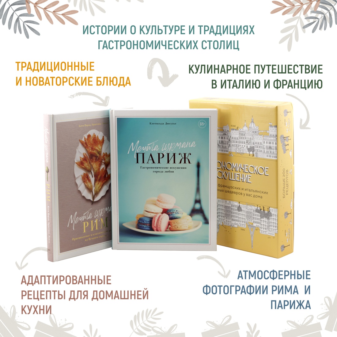 Подарите своим близким возможность прожить один день в нежном Париже или ярком Риме вместе с комплектом из двух книг с самыми знаменитыми рецептами гастрономических столиц мира. Рецепты удивят опытного повара и порадуют осторожного новичка. Этот подарочный набор содержит не только лучшие рецепты национальной кухни Италии и Франции, но и рассказ о местной культуре и общественной жизни. Изящный и стильный, комплект станет готовым решением для тех, кто не может часами выбирать подарки в преддверии праздников.| Издательство | КоЛибри |