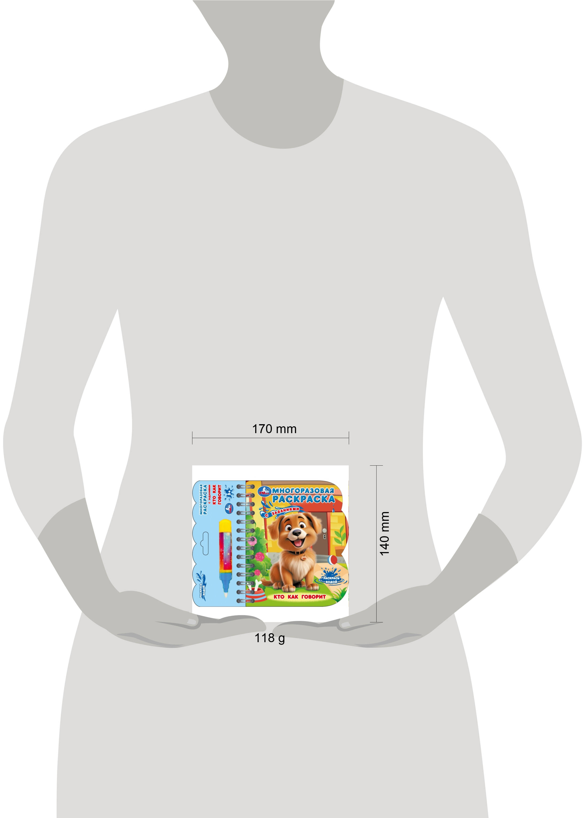 Многоразовая водная раскраска с заданиями "Гав-гав! Кто как говорит" ТМ "УМка" непременно понравится малышу: - раскрашиваем водой: водный маркет в комплекте - можно раскрашивать не один раз - занимательные задания - знакомство с окружающим миром - удобный небольшой формат Раскраска с интересными иллюстрациями милых зверушек не только скрасит досуг ребёнка, но и в игровой форме подготовит его руку к письму. Чтобы раскрасить картинку, достаточно просто провести по ней маркером, предварительно наполненным водой, при этом руки и одежда маленького художника всегда останутся чистыми. Спустя 5-10 минут рисунок высохнет, и можно будет творить снова! Благодаря компактному размеру издание удобно брать с собой в дорогу. Занятия с водной раскраской ТМ "УМка" развивают: - координацию движений - мелкую моторику - творческое мышление - фантазию - внимание Объём: 8 стр. Формат: 135 х 165 мм. Материал: картон + пластмасса. Рекомендовано детям дошкольного возраста.| Издательство | С-Маркет ООО |
