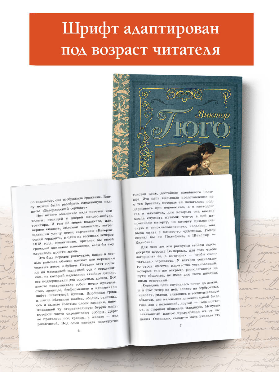 В книгу вошли избранные главы из романа «Отверженные» французского писателя Виктора Гюго (1802-1885). История маленькой Козетты, которую мать отдала на воспитание злому и жадному трактирщику Тенардье и его жене, не оставит равнодушными юных читателей. В чужом доме малышке Козетте было нелегко: живя впроголодь и донашивая старенькие вещи хозяйских дочерей, девочка выполняла самую тяжелую и грязную работу. Каково же было удивление и недоумение маленькой девочки, когда однажды, под Рождество, какой-то незнакомец купил ей дорогую куклу, а в своём деревянном башмачке, она нашла золотую монету!.. Юный Гаврош - другой герой романа «Отверженные» - вырос на улицах Парижа. Город заменил ему родителей, братьев и сестер, городские трущобы стали ему родным домом. Наравне со взрослыми юный Гаврош отважно сражается на баррикадах революционного Парижа. Главы романа, вошедшие в книгу, входят в программу для обязательного чтения в начальной ьшколе.| Издательство | АСТ |