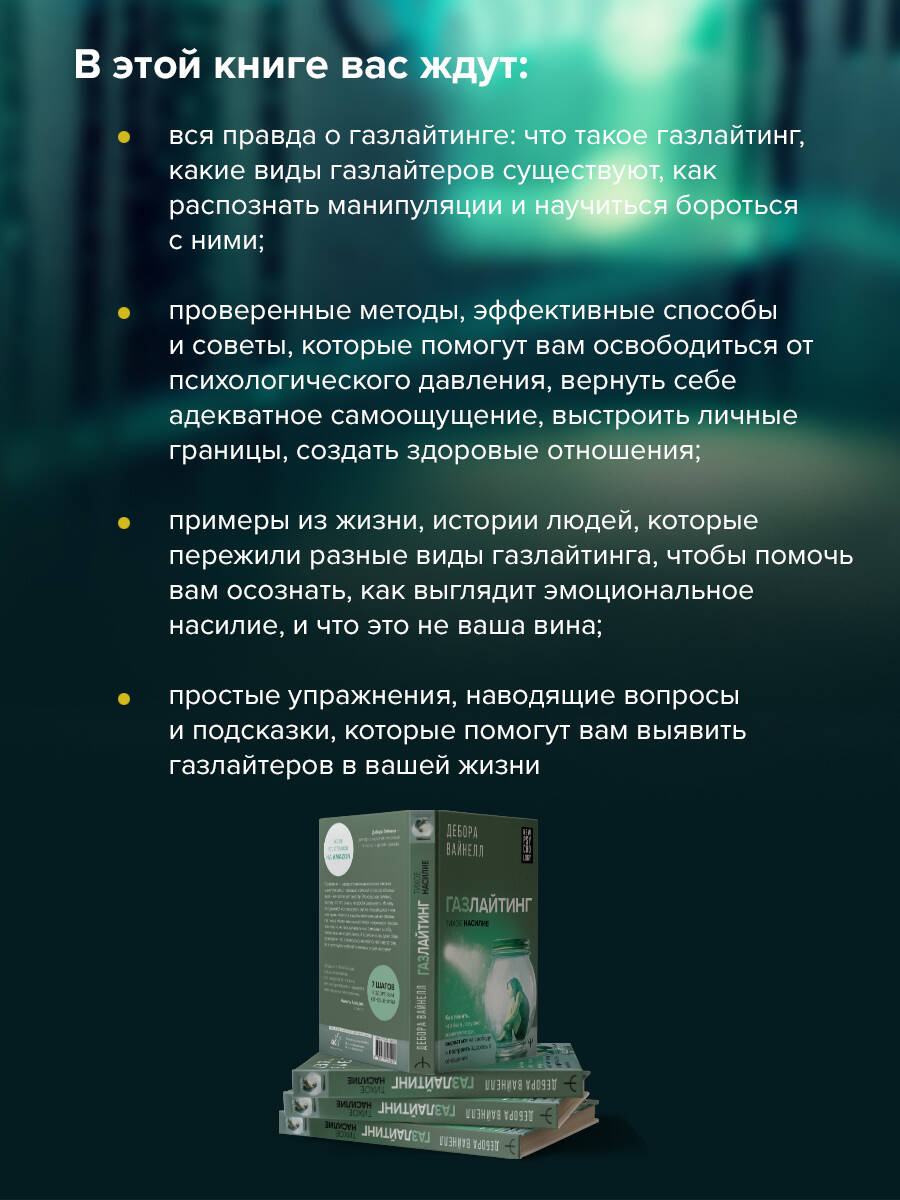 Аннотация: Газлайтинг - тихое насилие. Как понять, что вы в ловушке манипулятора, вырваться на свободу и построить здоровые отношения