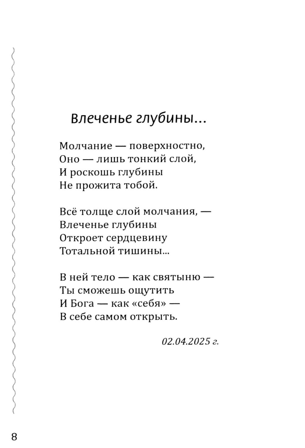 Когда ум наполняется спокойствием и тишиной, то в глубине нашего Сознания возникает чистота и ясность. И теперь Оно способно отражать Высшую реальность, как водная гладь отражает небо. Так мы постигаем Глубину и Высоту одновременно: Где Глубина - там Высота.