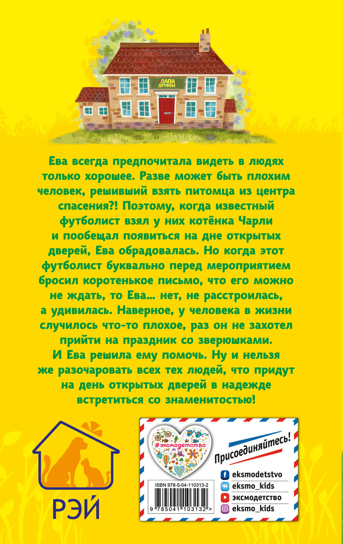 Ева всегда радовалась, когда животные из центра спасения находили новых хозяев. А тут котёнка Чарли взял очень известный футболист, да ещё и пообещал прийти в центр на день открытых дверей. Но перед самым мероприятием футболист вдруг прислал холодное письмо с отказом, чему Ева весьма удивилась. Гости на празднике будут весьма расстроены, если не встретятся с обещанной знаменитостью, поэтому Ева решила, что надо съездить к этому человеку и прямо спросить, почему он передумал. Но вот чего она точно не ждала - пустого запертого дома и голодного Чарли в саду. Какой ужас! Неужели этот футболист оказался плохим человеком и выкинул питомца на улицу?| Издательство | ООО "Издательство "Эксмо" |