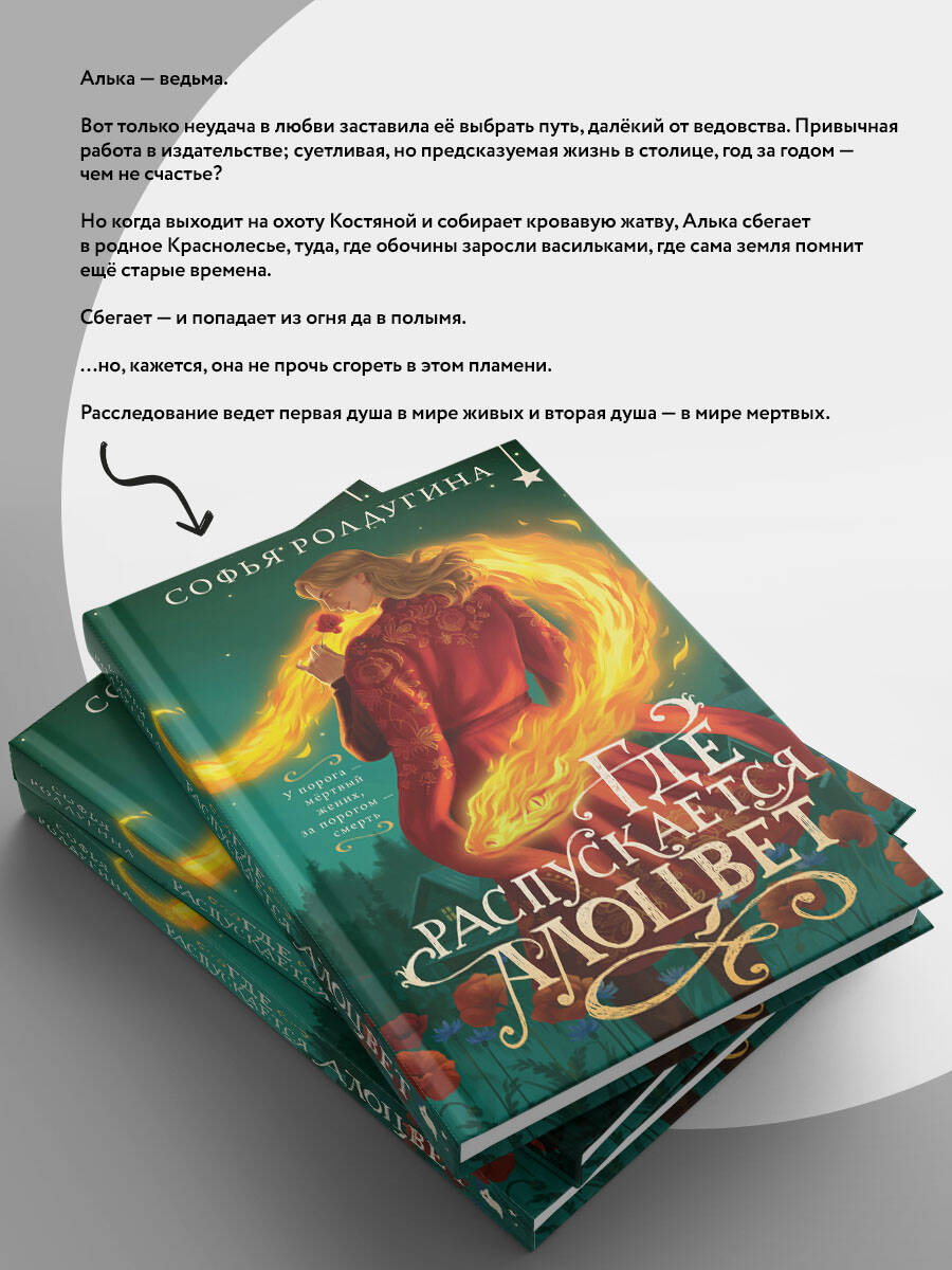 У Альки рыжие кудрявые волосы, нос в конопушках и тихий нрав. Алька - ведьма. Вот только неудача в любви заставила её выбрать путь, далёкий от ведовства. Привычная работа в издательстве; суетливая, но предсказуемая жизнь в столице, год за годом - чем не счастье? Но когда выходит на охоту Костяной и собирает кровавую жатву, Алька сбегает в родное Краснолесье, туда, где обочины заросли васильками, где сама земля помнит ещё старые времена. Сбегает - и попадает из огня да в полымя. …но, кажется, она не прочь сгореть в этом пламени.