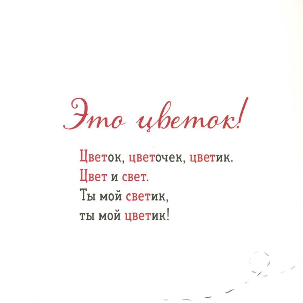 Перед вами книга о ЦВЕТАХ. Малыш видит цветы, но пока не понимает, почему один можно потрогать, а другой - лучше не стоит, один близко, а другой - высоко, не достать. Мы помогаем разобраться с тем, в каких ипостасях цветы существуют - в вазе, на дереве, на кусте, в горшке, как принт на платье и так далее. Совсем скоро ребёнок научится говорить, протянет руку и скажет: «Это цветок».| Издательство | Волки на парашютах |