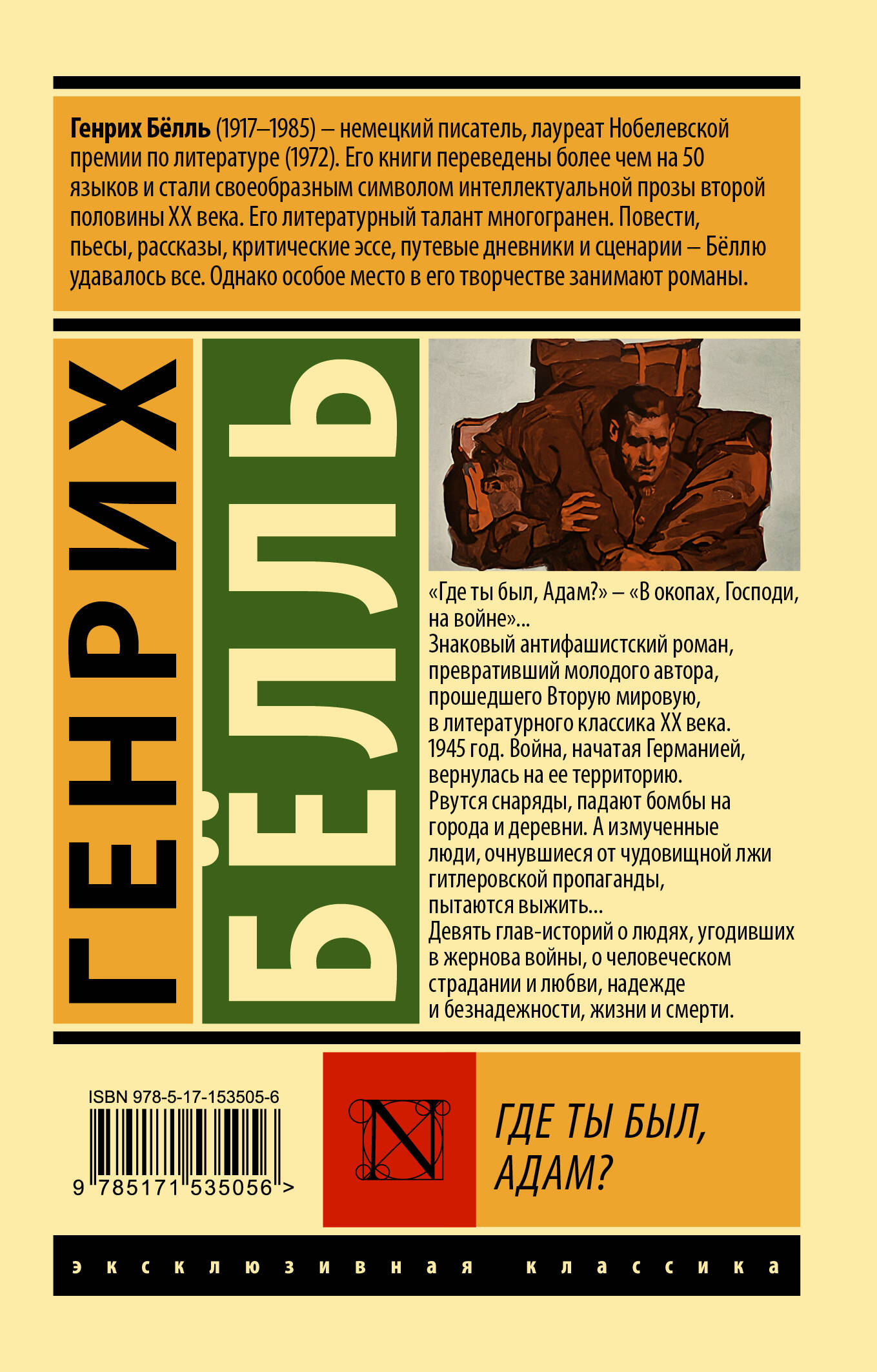 Генрих Бёлль прошёл Вторую мировую войну, и этот жестокий и беспощадный опыт нашёл отражение в его творчестве. Антивоенный роман «Где ты был, Адам?» принёс своему создателю мировую славу, впоследствии Бёлль стал одним из самых известных классиков XX века. Для поклонников мемуаров Себастьяна Хафнера «История одного немца», бессмертного романа Эриха Марии Ремарка «На западном фронте без перемен» и фильма «Кролик Джоджо».