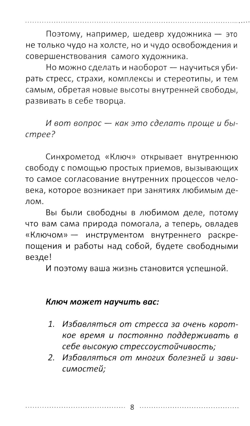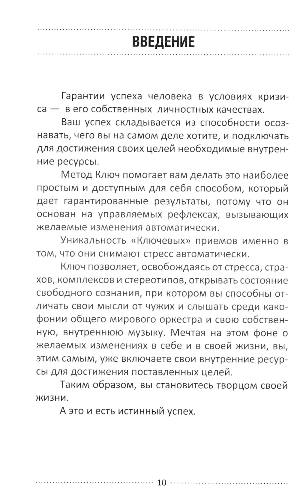 Каждый человек стремится к успеху, к самореализации. Это заложено в нашей природе, является нашей внутренней потребностью. Разработанный профессором Хасаем Алиевым «Метод Ключ» позволяет каждому человеку раскрыть в себе Творца своей жизни. И сделать это максимально простым и доступным для себя способом, что особенно важно в условиях современной жизни. Прочитав эту книгу, вы научитесь распозавать свои истинные цели и достигать их кратчайшим путем, умело подключая для этого внутренние резервы. Творить жизнь по своему сценарию - это и есть Успех.| Издательство | Книга |