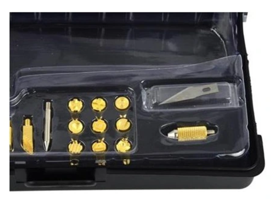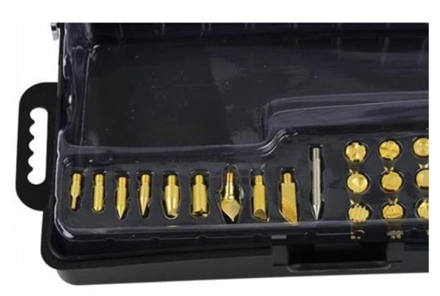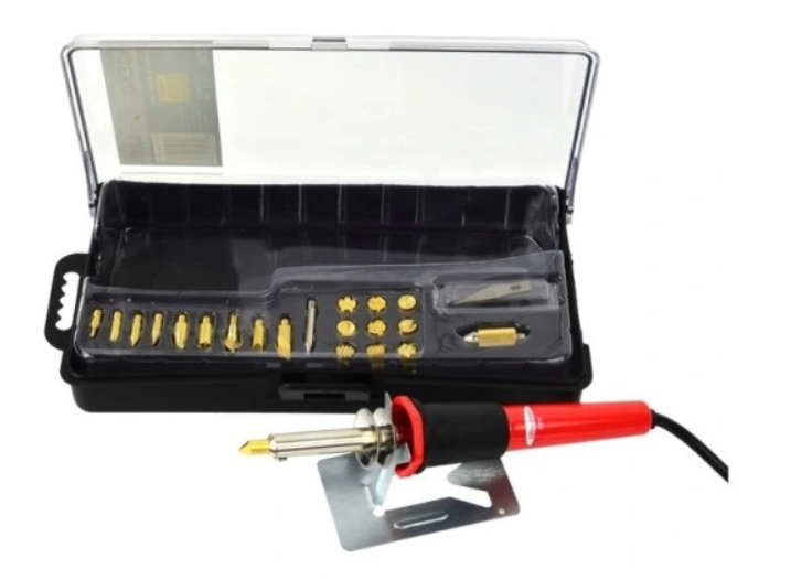- Горелка для декорирования предметов из дерева, кожи или пробки с использованием нагретого наконечника, обжигающего орнаменты, рисунки...