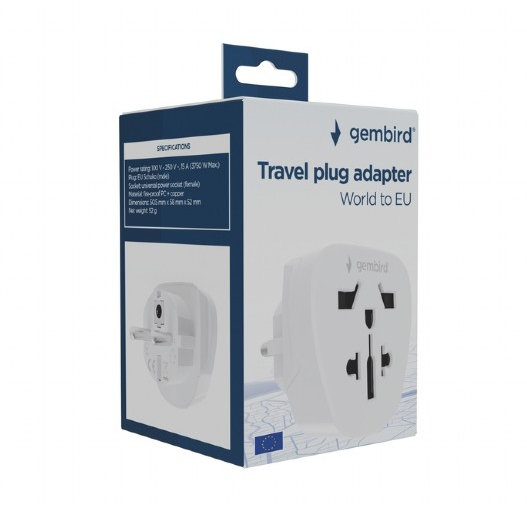Gembird A-AC-EUMINTF World to EU Adapter 15A - универсальный адаптер для подключения электронных устройств с вилками различных стран к розеткам стандарта ЕС. Поддерживает максимальную силу тока до 15 А, обеспечивает безопасное и надёжное соединение. Идеален для путешествий и использования в домашней технике.
