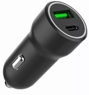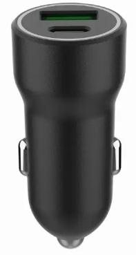 Двухпортовое автомобильное зарядное устройство для прикуривателя с USB‑C PD 20 Вт и USB‑A QC 3.0 18 Вт.