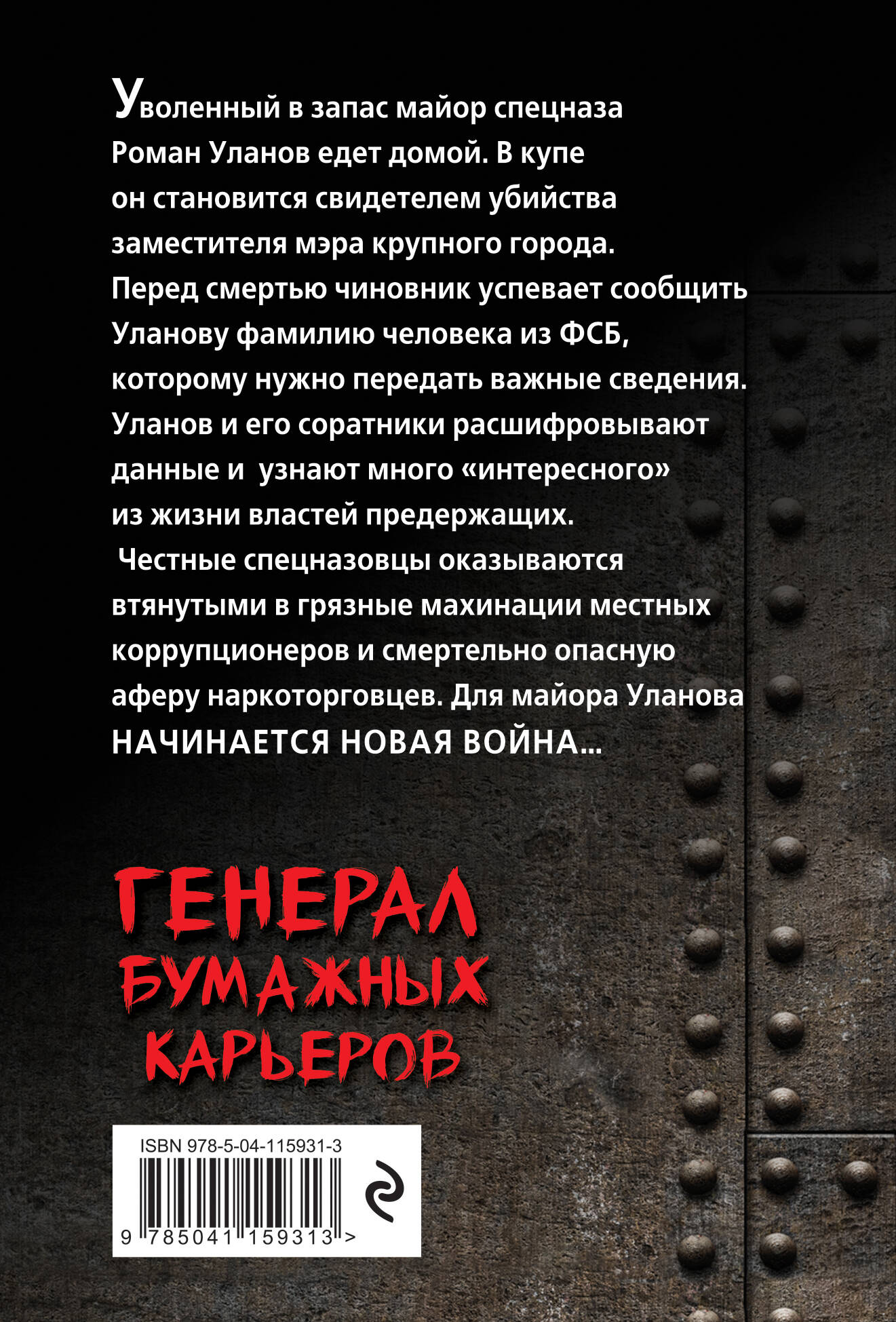 Пронзительно правдивые романы о войне от участника боевых действий. Суммарный тираж книг автора - около 10 миллионов экземпляров. Уволенный в запас майор спецназа Роман Уланов едет домой. В купе он становится свидетелем убийства заместителя мэра крупного города. Перед смертью чиновник успевает сообщить Уланову фамилию человека из ФСБ, которому нужно передать важные сведения. Уланов и его соратники расшифровывают данные и узнают много «интересного» из жизни власть предержащих. Честные спецназовцы оказываются втянутыми в грязные махинации местных коррупционеров и смертельно опасную аферу наркоторговцев. Для майора Уланова начинается новая война…| Издательство | ООО "Издательство "Эксмо" |