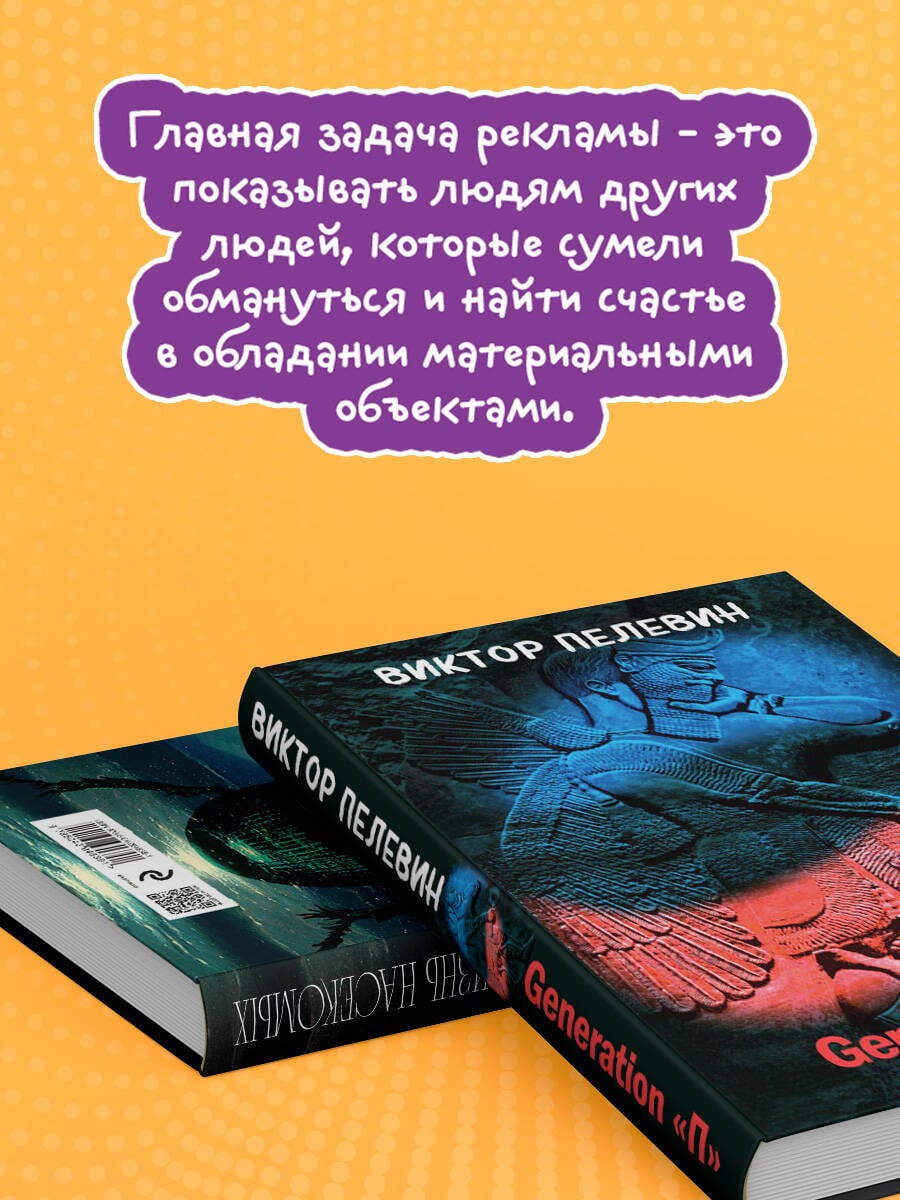 О Викторе Пелевине не слышал, наверное, только глухой: он является одним из самых читаемых писателей современности. Роман «Generation "П"» стал бестселлером всех времен и форматов. Написанный о поколении семидесятых, которое выбрало пепси, он странным образом читается свежо и для поколения, рожденного в девяностые. По его произведениям снято несколько фильмов, сам он не появляется на публике и сохраняет максимальную степень секретности. Происходящее в романе отсылает нас к заре русского бизнеса. Молодой парень с вычурным именем Вавилен Татарский пробует свои силы в рекламе и маркетинге, но помимо модной профессии получает полный набор хтонических приключений, меняющих его навсегда.| Издательство | ООО "Издательство "Эксмо" |
