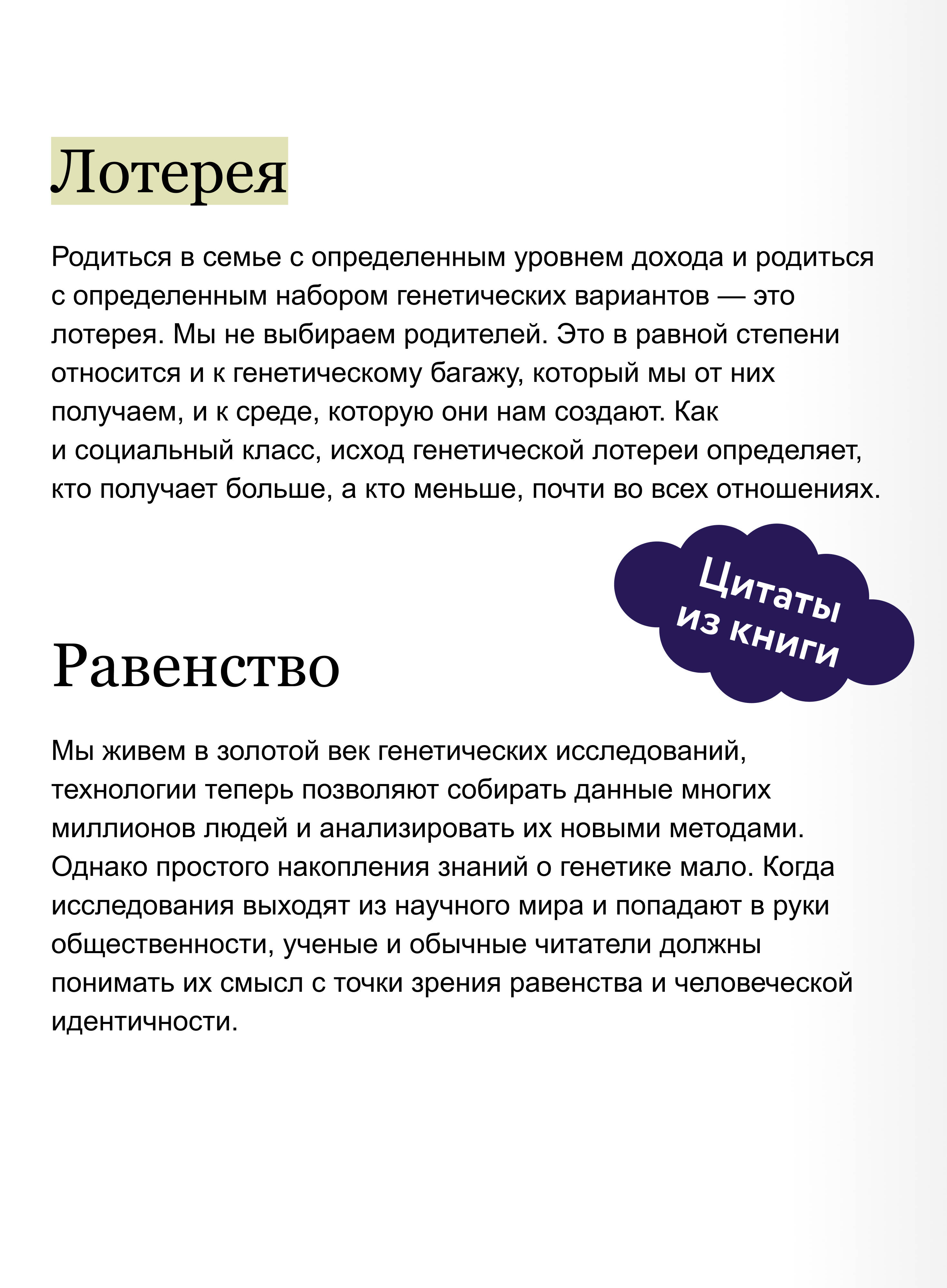 О роли генетической случайности в образовании и жизни Как генетика может помочь в установлении справедливости Всемирно известная книга специалиста по психогенетике| Издательство | МИФ ООО |