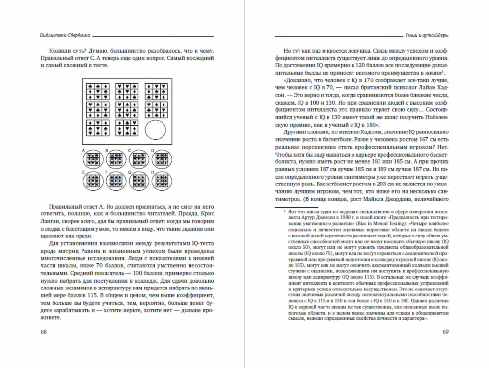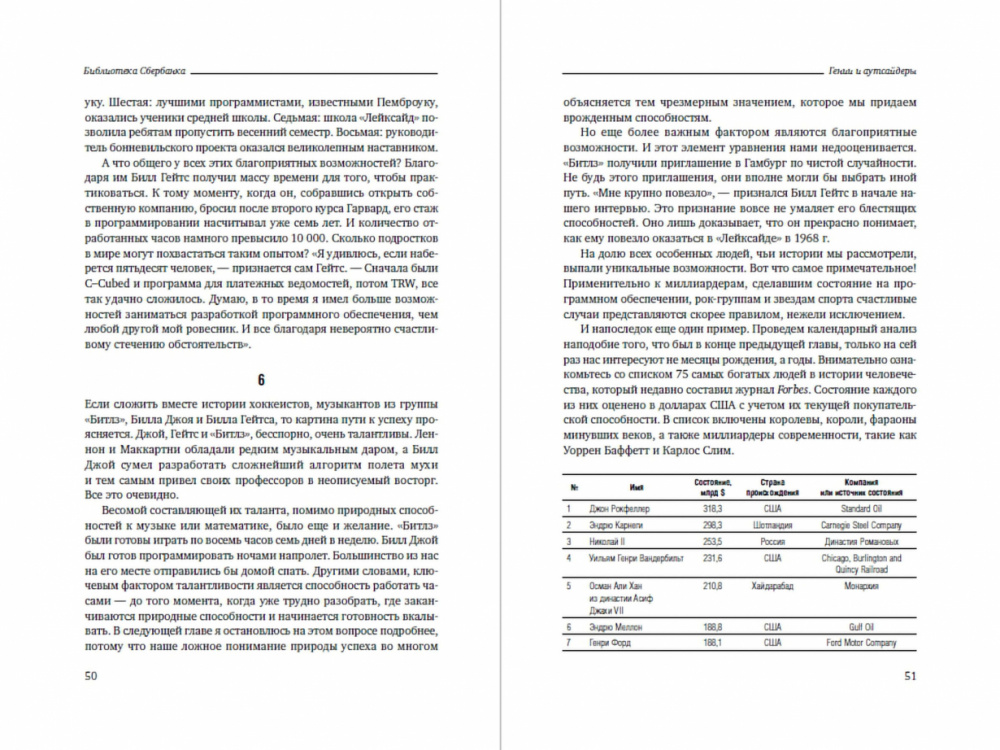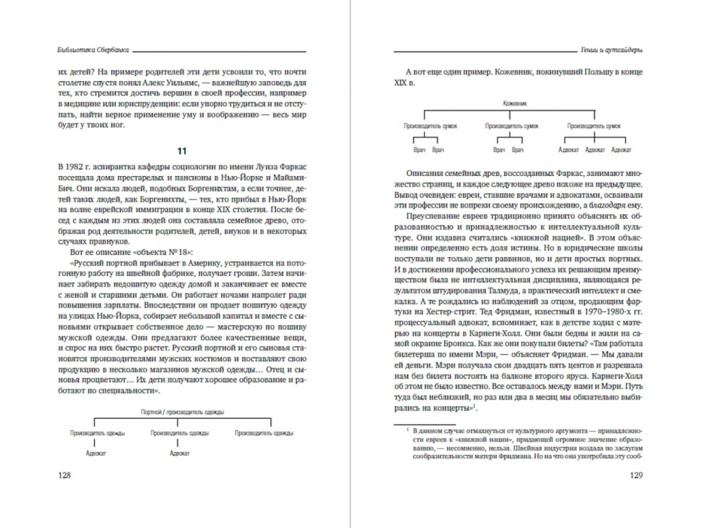 Книга легко читается, настраивает на оптимизм; она получила отличные отзывы - например, легендарный британский журнал «Экономист» назвал «Гениев и аутсайдеров» «захватывающим чтением с важным посылом», а лауреат Пулитцеровской премии Дэвид Леонхардт написал, что книга «заставляет обдумывать находчивые теории дни спустя после прочтения».