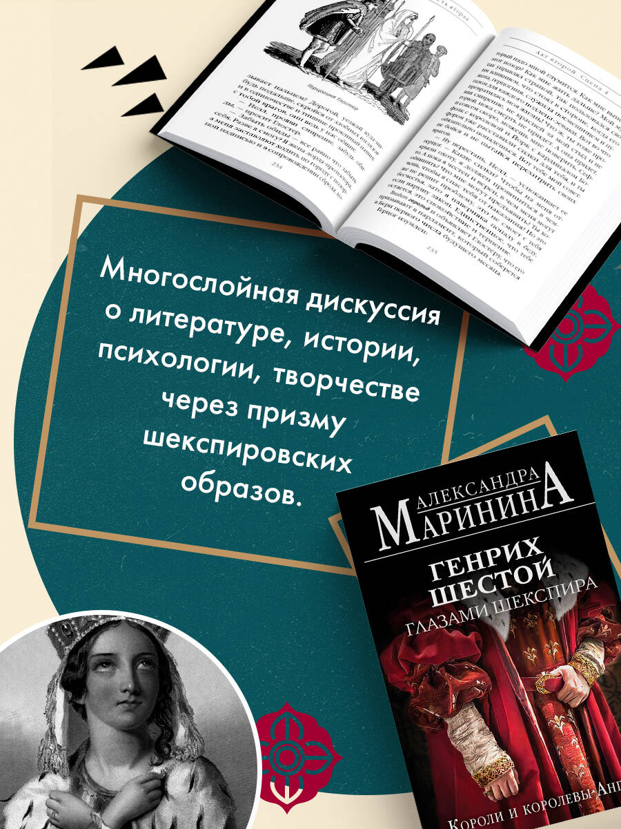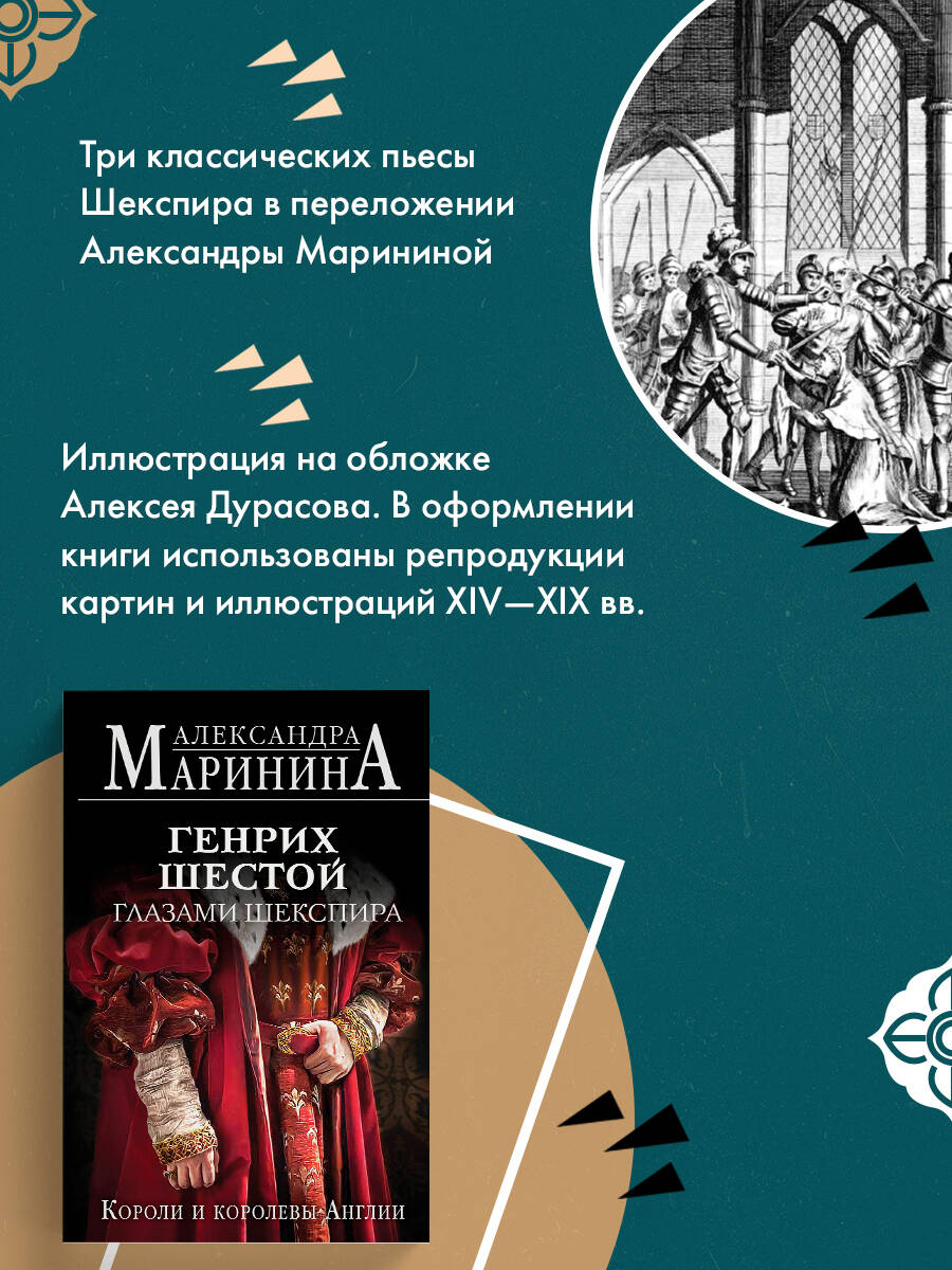 Генрих Шестой - самая трагическая фигура на английском престоле - в новой исторической книге Александры Марининой. Восьми месяцев от роду занял отцовский трон. В девять лет был увенчан французской короной. Казалось, сбылась золотая мечта Вильгельма Завоевателя о "единой и неделимой" Англо-Французской монархии. Но не срослось… Потерял Генрих Шестой, все потерял! Столетнюю войну проиграл Жанне д'Арк с ее орлеанцами. Братоубийственную бойню Алой и Белой роз не предотвратил. Месяцами находился в шизофреническом ступоре. Злые языки шептались, что жена, прекрасная Маргарита Анжуйская, неверна. Власть уплывала из рук, а он грезил об идиллической жизни пастуха и поэта. В 49 лет последний из династии Ланкастеров оказался очевидцем убийства своего единственного сына Эдуарда и сам погиб в плену. Стоит ли удивляться, что творец принца Гамлета посвятил Генриху Шестому наиболее объемную свою пьесу! Пригласив в качестве главного свидетеля самого Шекспира, Александра Маринина иронично и психологически убедительно рассказывает историю о несчастном короле и о его сумасбродных современниках. С ее легкой руки преданья старины глубокой оказались столь же увлекательны как детектив, и столь же изящны и легки как музыкальная миниатюра.