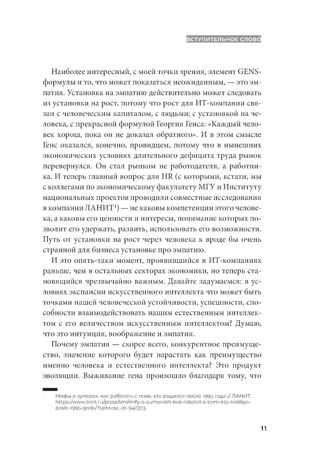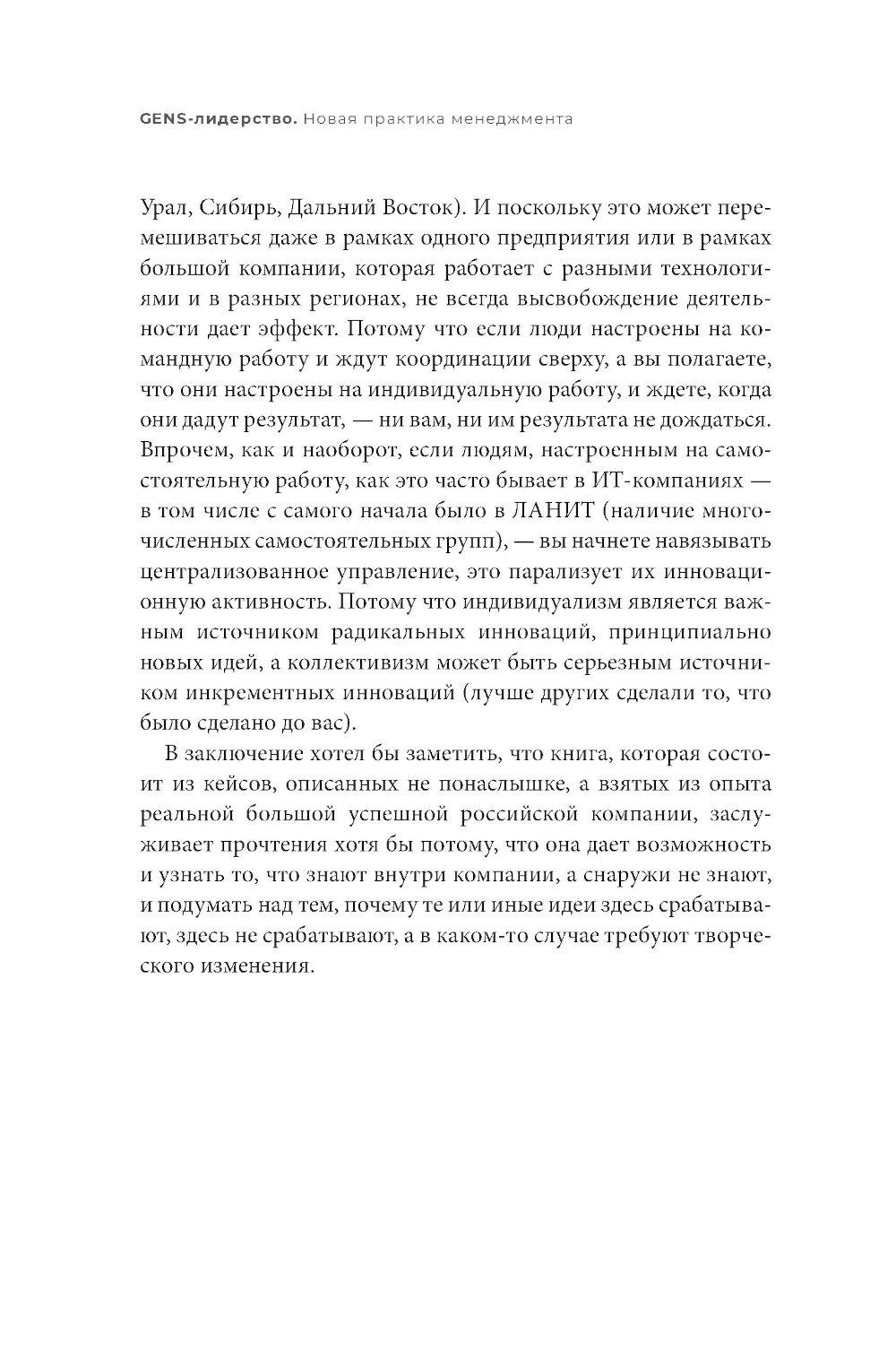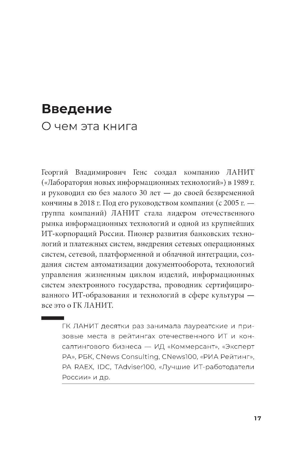 В основу книги лег уникальный опыт создания и развития ЛАНИТ, группы компании, выросшей за 30 лет из небольшого стартапа в лидера российского ИТ-рынка с оборотом более 200 млрд рублей. Георгий Генс начинал как программист, а стал создателем одной из крупнейших технологических компаний России. С 1989 по 2018 год он создавал особую культуру управления, основанную на доверии к людям и умении видеть возможности там, где другие видели препятствия. Авторы книги - топ-менеджер ЛАНИТ Владимир Вертоградов, проработавший с Генсом более 20 лет, и бизнес-консультант Виктория Шиманская - систематизировали его управленческие практики по модели GENS-лидерства: Growth (рост) - о том, как принимать стратегические решения в условиях неопределенности и находить новые возможности для развития. Empathy (эмпатия) - о построении команды, где каждый сотрудник может реализовать свой потенциал, и создании по-настоящему клиентоориентированной культуры. Novation (инновации) - о том, как внедрять изменения без разрушения существующих процессов и развивать новые направления бизнеса. Sustainability (устойчивость) - о выстраивании системы, которая работает как часы даже в кризисные периоды. Каждый принцип раскрывается через живые примеры из практики ЛАНИТ: от истории первой сделки с банком в 1990 году до создания масштабных государственных проектов, от преодоления кризиса 1998 года до успешной цифровой трансформации 2020-х.| Издательство | Альпина ПРО |