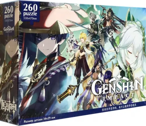 Пазл 260 элементов станет отличным подарком для поклонников известной лицензии «Genshin Impact». На пазлах представлены главные герои популярной во всём мире игре. Сборка пазлов развивает внимательность и усидчивость, а также является отличным занятием для всех возрастов. Соберите всю коллекцию!