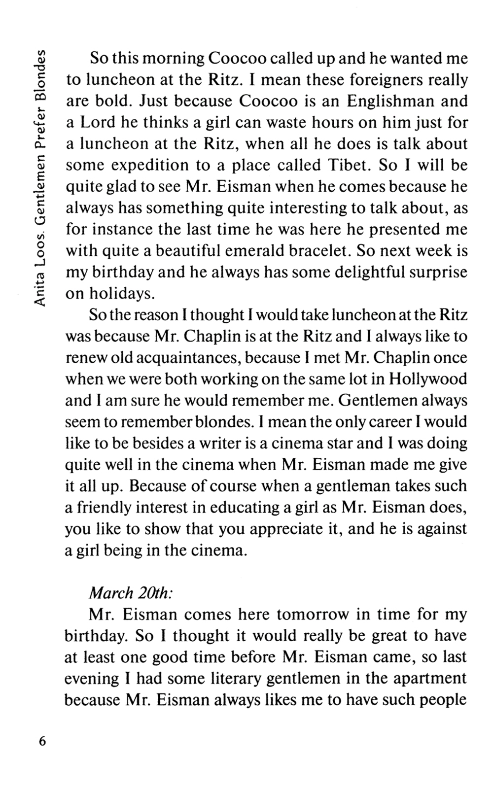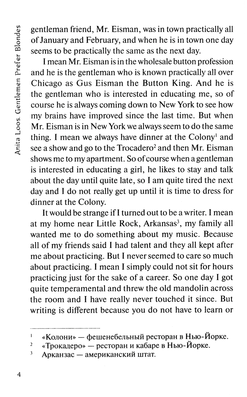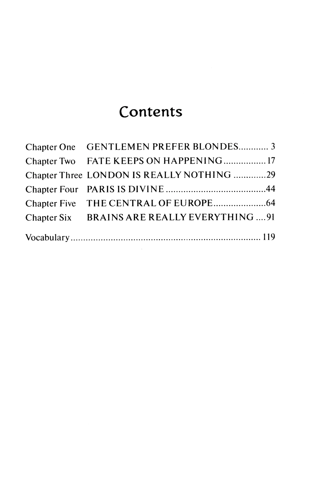 Героиня романа, хорошенькая провинциалка Лорелея Ли, в юности совершает убийство своего покровителя, но, применив чары, оказывается оправдана судьёй и вызывает сочувствие присяжных. Теперь она карабкается по социальной лестнице, прокладывая себе путь в блестящую светскую жизнь Века джаза. Наивная, глупая, она уверена, что Вена - во Франции, Австралия - в Англии, что все мужчины в Париже, по-видимому, Людовики, да ещё и пронумерованные. Однако всё это не мешает ей добиться расположения богача Генри Споффарда, за которого она вот-вот выйдет замуж. Текст сокращён и адаптирован. Уровень В1.| Издательство | Антология |
